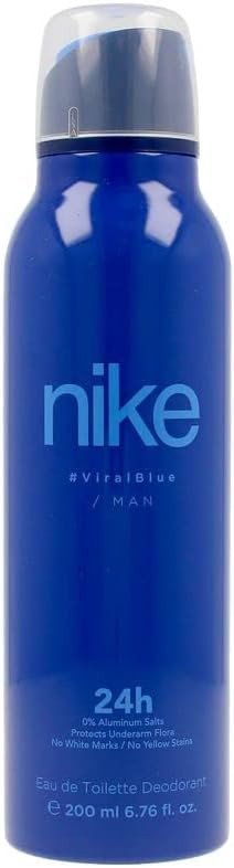 Nike Viral Blue Man Deodorant Spray offers a refreshing scent with aquatic and woody notes. Designed for the active man, it provides long-lasting odor protection and a sporty vibe. 24-hour protection 0% Aluminum Salts Protects underarm flora No white marks or yellow stains Eau de Toilette Deodorant Fragranced formula Strong antibacterial properties Gentle on sensitive skin Nike Viral Blue Man Deodorant Spray offers a refreshing scent with aquatic and woody notes. Designed for the active man, it provides long-lasting odor protection and a sporty vibe.Shake Well Before Use. Spray Onto Underarms Or Body From A Distance Of 15Cm.Avoid Contact With Eyes, Do Not Pierce Or Burn, Even After Use, Do Not Spray On An Open Flame Or Other Ignition Source, Do Not Use Near Open Flames Or Heat Sources, Extremely Flammable Aerosol, Highly Flammable, Pressurised Container: May Burst If Heated, Store Out Of Reach Of Children.