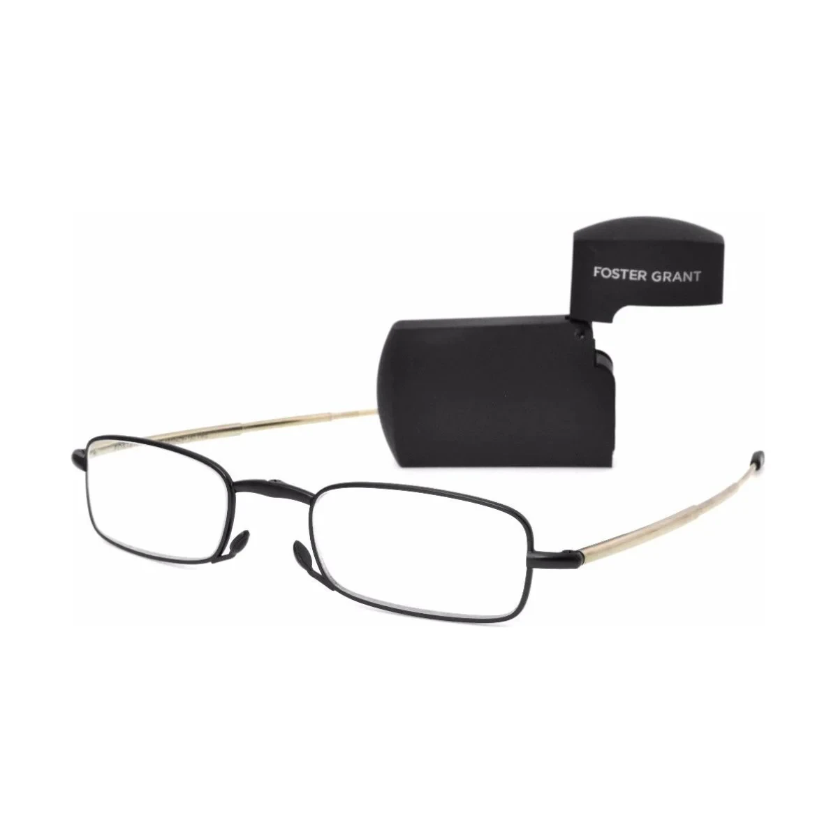 Part of the Gideon Folding Micro-Reader Collection by Foster Grant® are the Gideon Black Micro-Readers. Perfect for ever day use, these readers are available in six different magnification levels and also feature rectangular frames and plastic lenses. Gideon folding Micro-Readers perfectly fold into their own compact case and are ideal for everyday use. ="tw-text-black tw-font-gotham-medium tw-font-bold tw-text-fs-14">