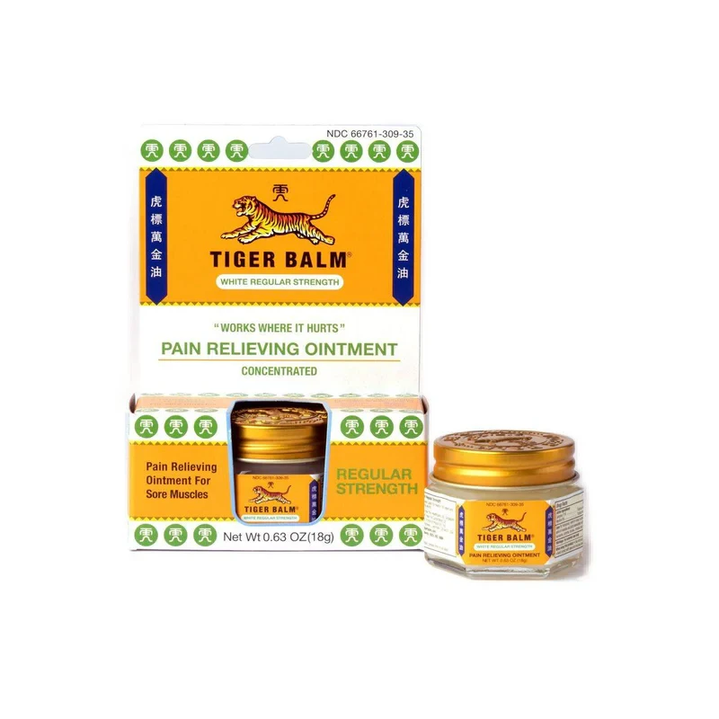 Tiger Balm White Ointment provides fast-acting relief for muscular aches, headaches, and cold symptoms. Made with herbal ingredients like camphor and menthol, it is ideal for soothing discomfort. Key Features Provides temporary relief from minor aches in muscles and joints Non-greasy and easy to apply Concentrated formula for effective relief Non-staining For external use only Camphor (11%), Dementholized Mint Oil, Cajuput Oil, Menthol, Clove Oil, Paraffin Petrolatum.Tiger Balm is renowned for its herbal formulations providing fast-acting pain relief.Rub onto affected area 3-4 times per day.For external use only. Avoid contact with eyes and mucous membranes. Do not apply to open wounds or damaged skin. Do not bandage or use a heating pad with this ointment.