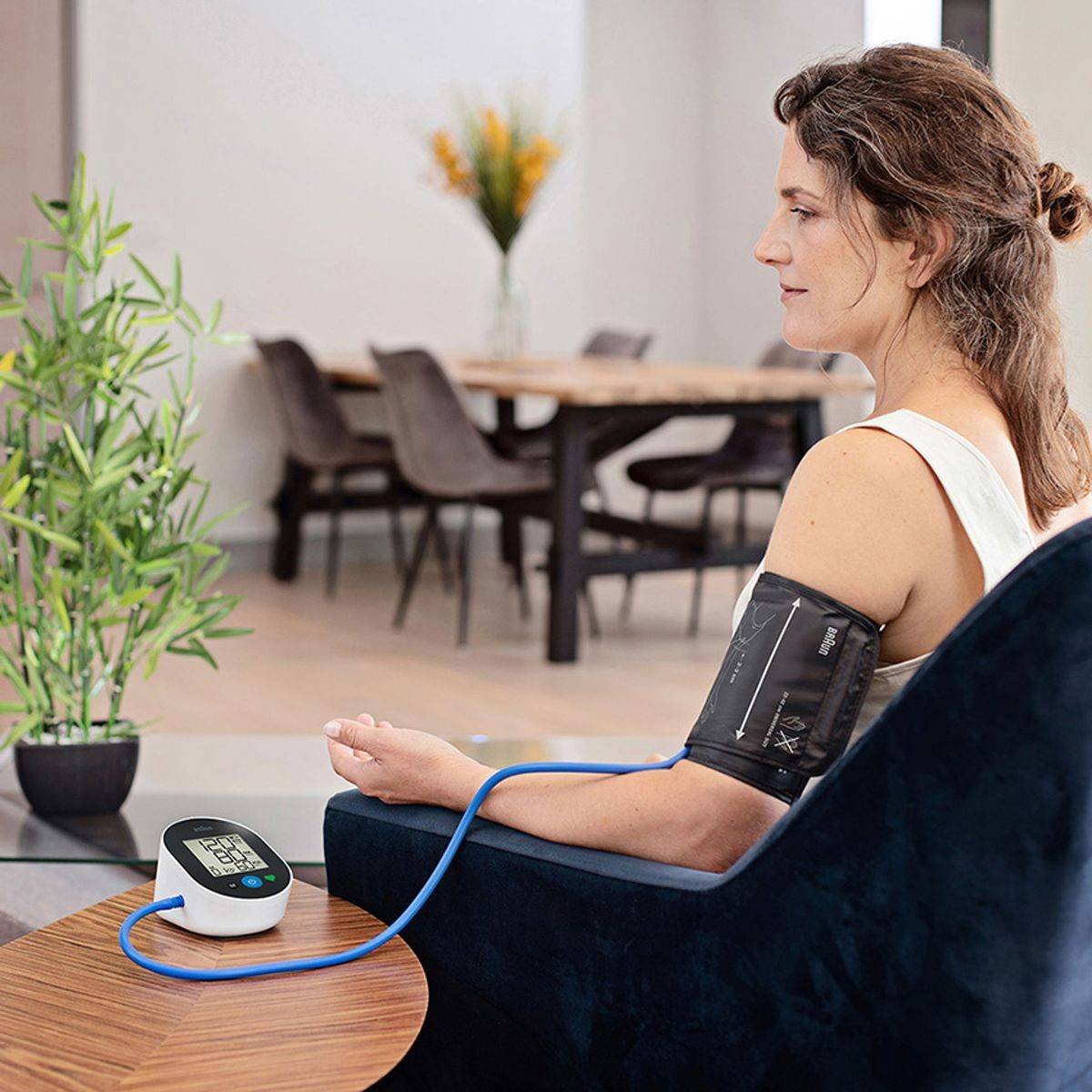 The Braun ExactFit 2 Blood Pressure Monitor offers clinically validated accuracy for home use. It features a universal cuff, color-coded display, and irregular heartbeat detection. Ideal for tracking heart health. Key Features Clinically validated accuracy Color-coded heart display Irregular heartbeat detection Universal cuff design Stores last 30 readings Access to Braun Healthy Heart app Key Materials: Electronic Device (Plastic casing, internal pump, micro-controller), Upper Arm Cuff (Nylon/Polyester fabric, internal air bladder).Innovative healthcare solutions with clinically validated accuracy.Place the cuff on your left arm, 2-3 cm above your elbow. Ensure the tube faces the same direction as your hand. Keep still and do not speak during measurement.If symptoms persist, consult your healthcare professional.