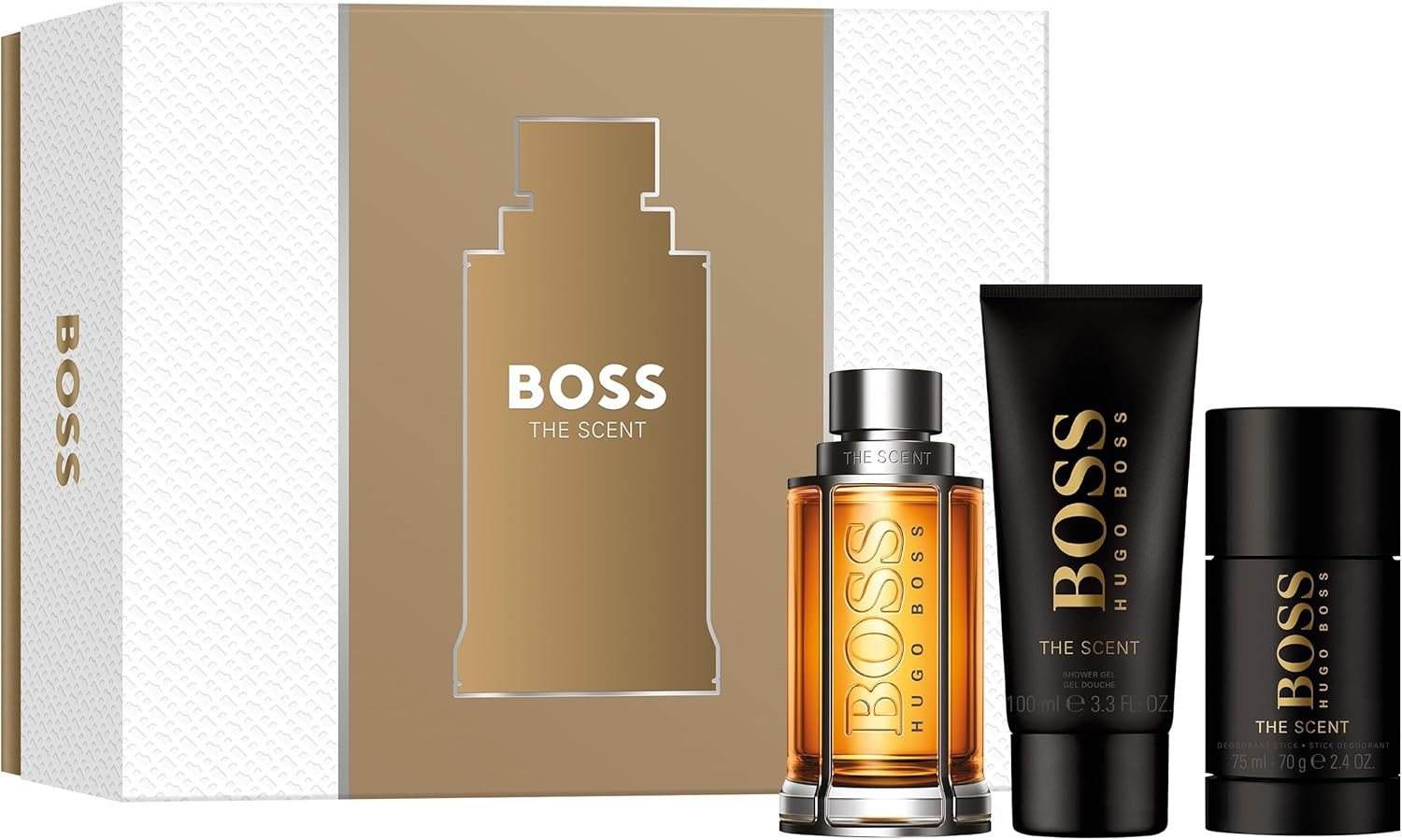 This Hugo Boss gift set includes a 100ml eau de toilette, 100ml shower gel, and a 75ml deodorant stick. The fragrance features fresh ginger, maninka fruit, and warm leather. Features