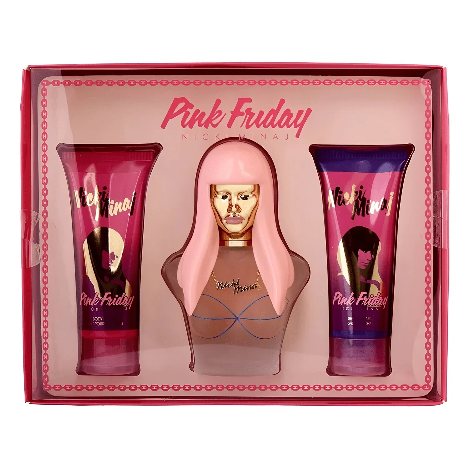 This Nicki Minaj Pinkiday set includes a 100ml Eau de Parfum, Body Lotion, and Bath & Shower Gel. Known for its captivating scent, it's perfect for gifting or personal use. Features Fresh scent Travel-size gift set Highly rated Suitable for adults Salicylic Acid.This Nicki Minaj Pinkiday set includes a 100ml Eau de Parfum, Body Lotion, and Bath & Shower Gel. Known for its captivating scent, it's perfect for gifting or personal use.