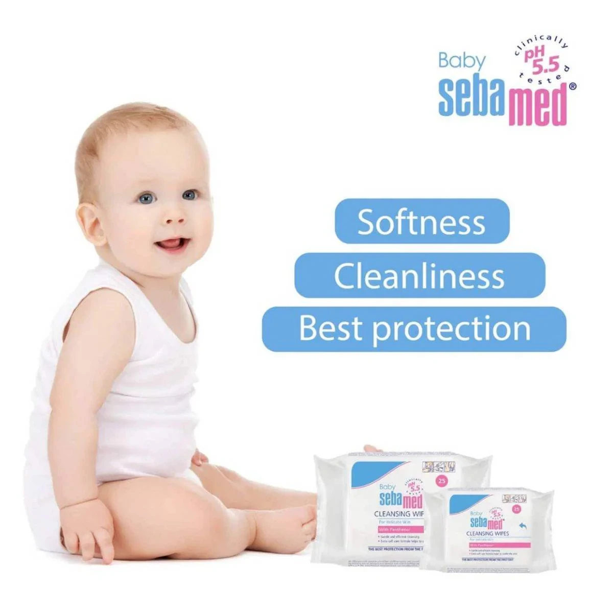 Sebamed Baby Cleansing Wipes are designed for gentle and efficient cleansing of delicate baby skin. Infused with panthenol, they provide extra-soft care and help soothe the skin. Ideal for daily use, these wipes offer hygienic protection against irritation and increase pathogenic resistance. Features Gentle cleansing for delicate baby skin Contains Panthenol and Chamomile Extract Extra-soft care formula Helps soothe and protect skin pH 5.5 for skin protection Panthenol, Chamomile ExtractExperts in baby care essentials and dermatologically tested products.Use As Needed For Cleansing Delicate Baby Skin.For external use only. Discontinue use if irritation occurs. Do not flush.