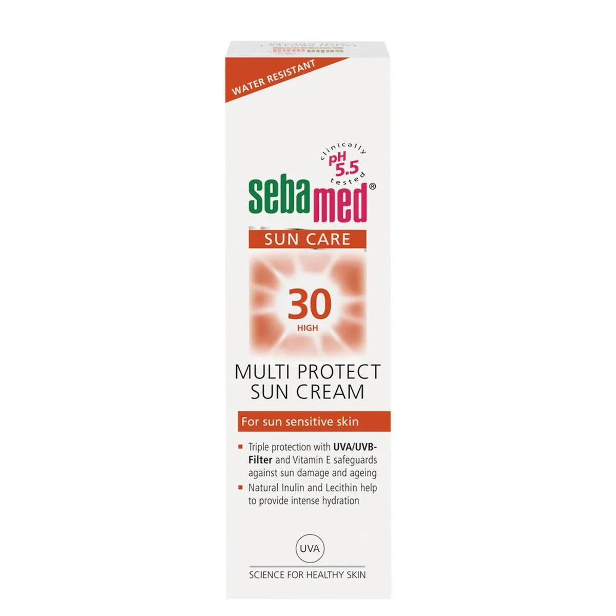 Sebamed Sun Care Multi Protect Sun Cream SPF 30 is designed for sun-sensitive skin, offering triple protection with UVA/UVB filters and Vitamin E. It hydrates and nourishes while maintaining skin elasticity, making it ideal for daily sun exposure. Features SPF 30 sun protection Moisturising cream for sensitive skin Water and sweat-resistant up to 6 hours Includes Vitamin E and Provitamin B5 Maintains skin elasticity Free from parabens and alcohol Natural hydro-fructose formula Aqua, Benzyl Alcohol, Bis-Ethylhexyloxyphenol Methoxyphenyl Triazine, C12-15 Alkyl Benzoate, Glycerin, Glyceryl Stearate, Titanium Dioxide (Nano), Diethylamino Hydroxybenzoyl Hexyl Benzoate, Lecithin, Inulin, Parfum, Phenoxyethanol, Sorbic Acid.Experts in dermatologically tested skincare