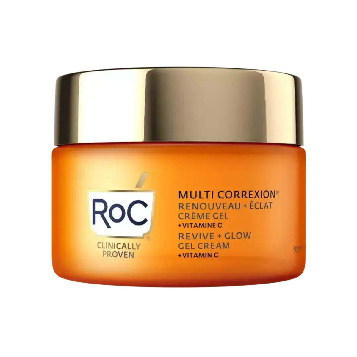 RoC Multi Correxion Revive & Glow Gel Cream is a lightweight, non-greasy moisturizer with 10% Vitamin C. It hydrates, brightens, and reduces wrinkles, suitable for daily use.