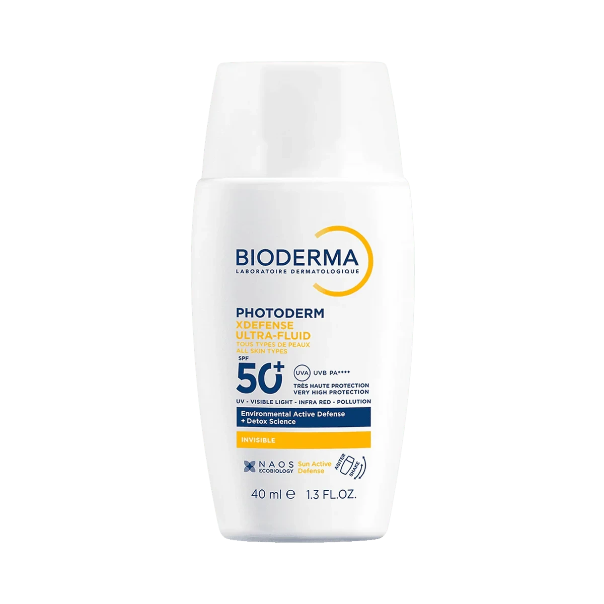 Bioderma Photoderm XDefense Ultra Fluid SPF50+ is an ultra-light, invisible sunscreen offering high protection against UV rays, visible light, infrared rays, and pollution. Its fast-absorbing texture leaves a matte finish, ideal for all skin types and as a makeup base. Provides 8-hour hydration and supports skin's natural detoxification. Features