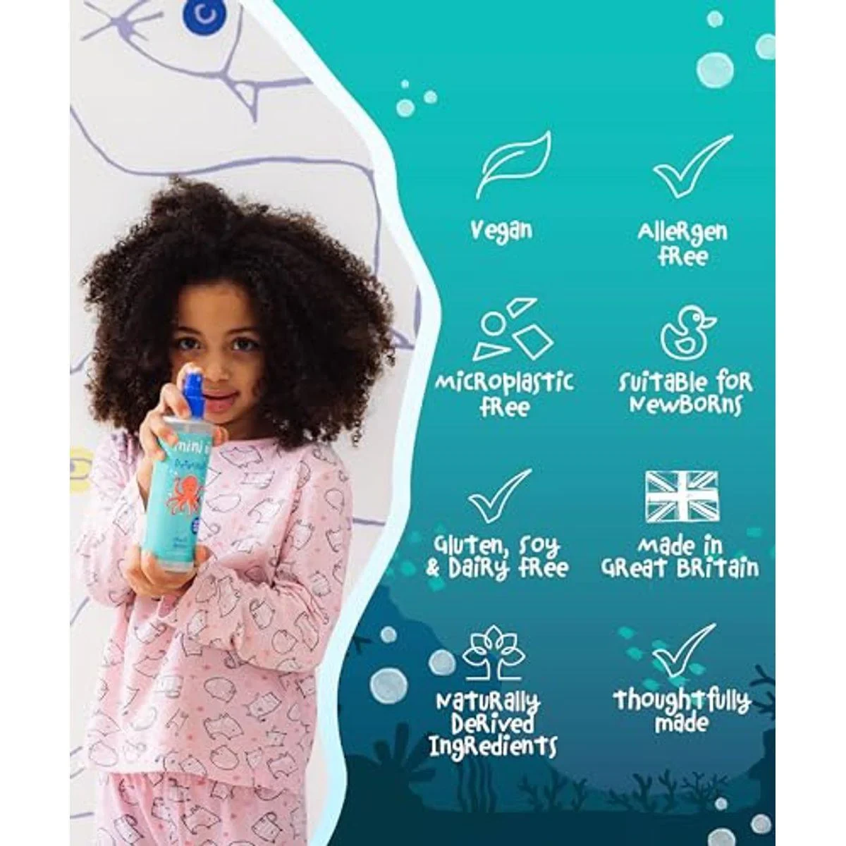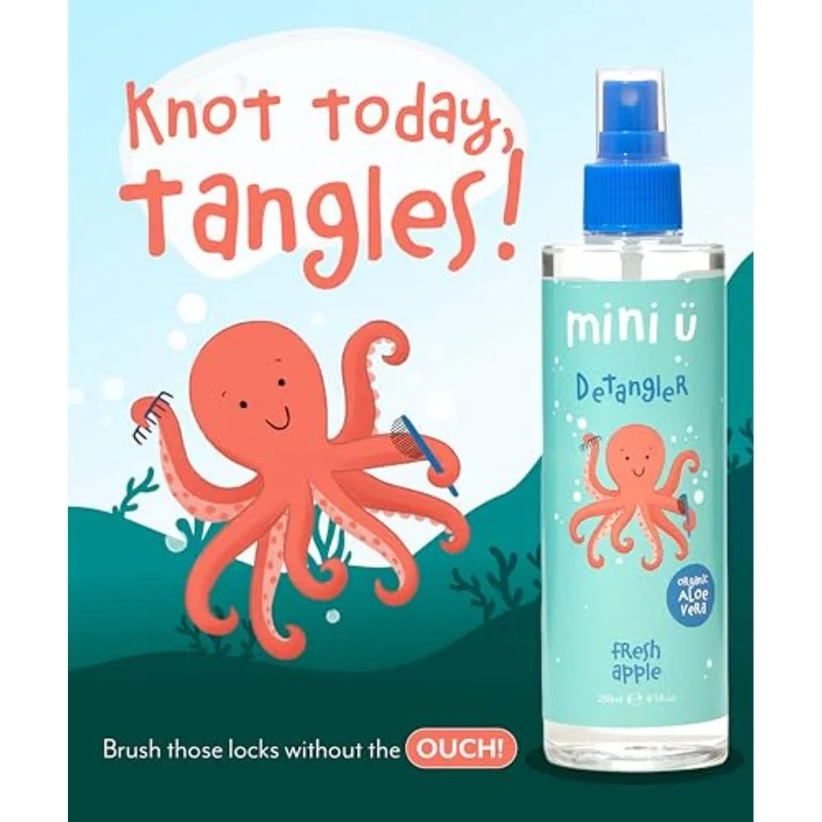 Mini U Organic Aloe Vera Detangler Fresh Apple is a kid-friendly hair spray designed to untangle stubborn curls with ease. Infused with organic aloe vera, it soothes the scalp while moisturizing and refreshing hair. Made from natural ingredients, this vegan formula is free from sulfates, parabens, and allergens, ensuring gentle care for newborns and older children alike. Key Features Detangling and smoothing properties Organic Aloe Vera for scalp soothing Gluten-free, paraben-free, plastic-free formula Suitable for newborns and older children Vegan and natural ingredients Fresh apple scent Easy combing without pulling Aloe Vera, Citric Acid, Glycerin, Lactic Acid, Panthenol, Salt.Mini U Organic Aloe Vera Detangler Fresh Apple is a kid-friendly hair spray designed to untangle stubborn curls with ease. Infused with organic aloe vera, it soothes the scalp while moisturizing and refreshing hair. Made from natural ingredients, this vegan formula is free from sulfates, parabens, and allergens, ensuring gentle care for newborns and older children alike.Evenly Spray Onto Damp Hair And Gently Comb From Tips To Roots. Can Also Be Used On Dry Hair For Combing And Refreshing.Suitable For Newborns.