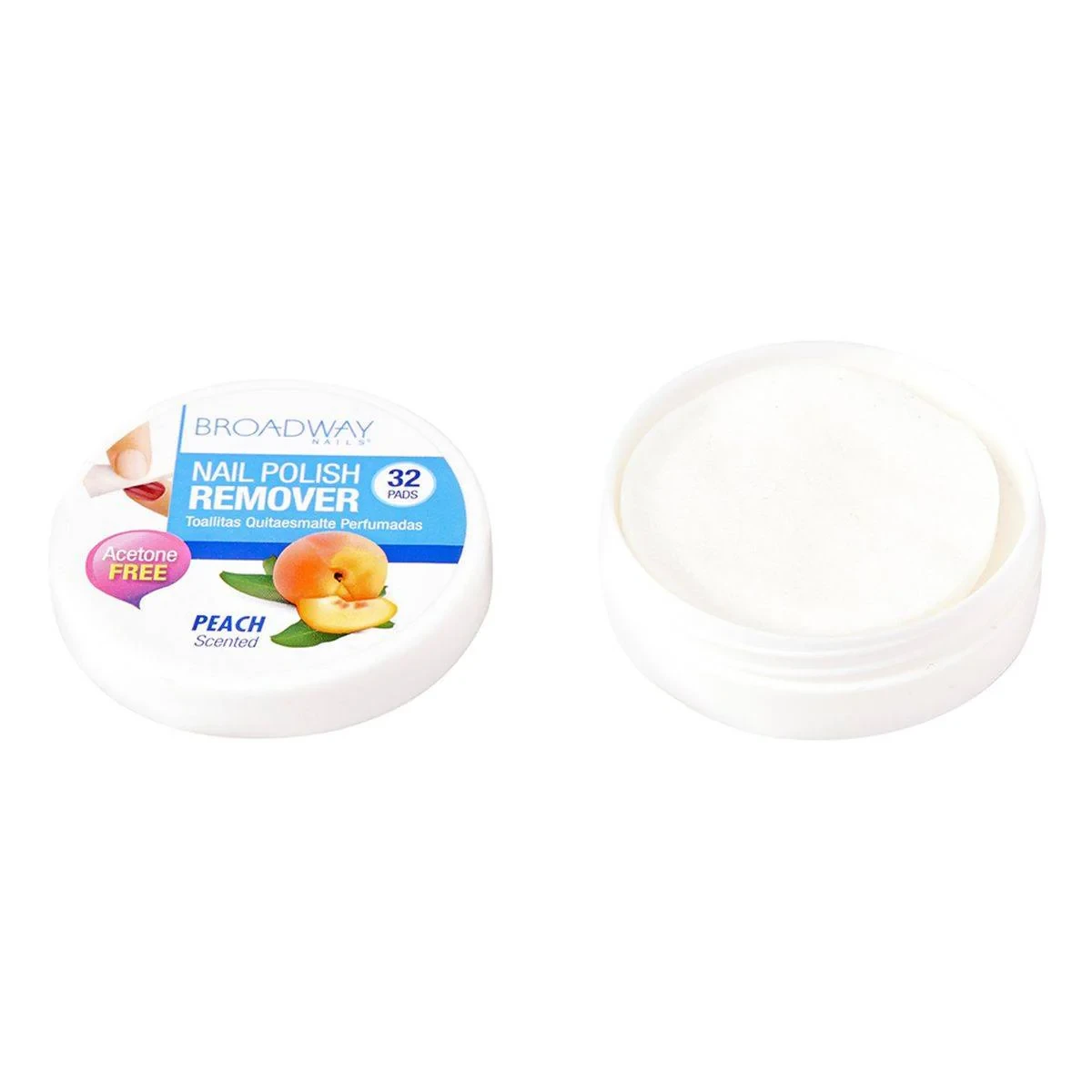 Kiss Broadway Beauty Nail Polish Remover Peach Pads offer acetone-free polish removal with moisturizing benefits. Ideal for quick and easy nail care. Features Acetone-free nail polish remover pads Quick and easy to use Moisturizes and protects nails and skin Refreshing peach fragrance Propylene Carbonate, Alcohol Denat., Water (Aqua), Propylene Glycol, Tocopheryl Acetate, Fragrance (Parfum), Benzyl Salicylate, Cinnamyl Alcohol, Hydroxyisohexyl 3-Cyclohexene Carboxaldehyde, Benzyl Benzoate, Citronellol, Hexyl Cinnamal, Butylphenyl Methylpropional.Innovative beauty solutions for nails and beyond.Use a saturated pad to gently wipe polish from the nail. Wash hands with soap before and after use.Keep out of the reach of children.