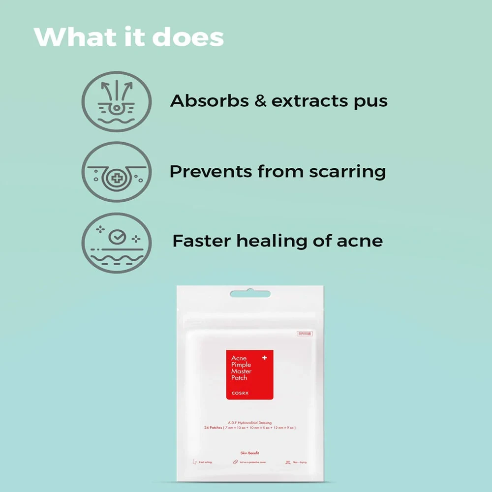Quick acne healing overnight Hydrocolloid patches that protect wounded or troubled area from getting worse while maintaining humidity of skin to prevent further breakouts. Petroleum Resin, Cellulose Gum, Styrene Isoprene Styrene Block Copolymer, Polyurethane Film, Polyisobutylene, Liquid Paraffin, TetrakismethaneQuick acne healing overnight Hydrocolloid patches that protect wounded or troubled area from getting worse while maintaining humidity of skin to prevent further breakouts.Cleanse the area around the problem spot. Select a bigger size patch than the problem spot and attach the patch to the spot.For external use only. Avoid contact with eyes. If the product gets into your eyes, rinse thoroughly with water. Discontinue use if a rash, redness, or itching occurs. Store in a cool, dry place away from direct sunlight.