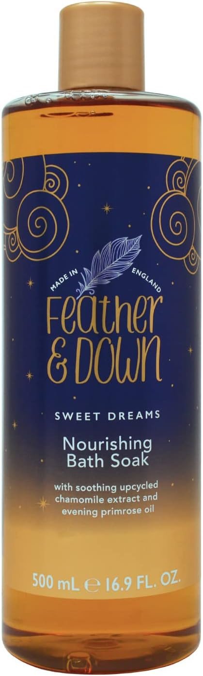 Aqua, Sodium C14 16 Olefin Sulfonate, Cocamidopropyl Betaine, Sodium Chloride, Peg 120 Methyl Glucose Dioleate, Parfum, Ppg 26 Buteth 26, Peg 40 Hydrogenated Castor Oil, Citric Acid, Sodium Benzoate, Glycerin, Sodium Hydroxide, Disodium Edta, Oenothera Biennis Oil, Chamomilla Recutita Extract, Anthemis Nobilis Flower Oil, Lavandula Angustifolia Herb Oil, Tocopherol, Helianthus Annuus Seed Oil, Potassium Sorbate, Linalool, Coumarin, Alpha Isomethyl Ionone, Ci 19140, Ci 17200.Feather & Down: UK's No.1 Sleep Brand known for soothing bath products with natural extracts.Pour under warm running water to create nourishing bubbles.For External Use Only. Avoid Contact With Eyes. Discontinue Use If Irritation Occurs. Keep Out Of Reach Of Children.