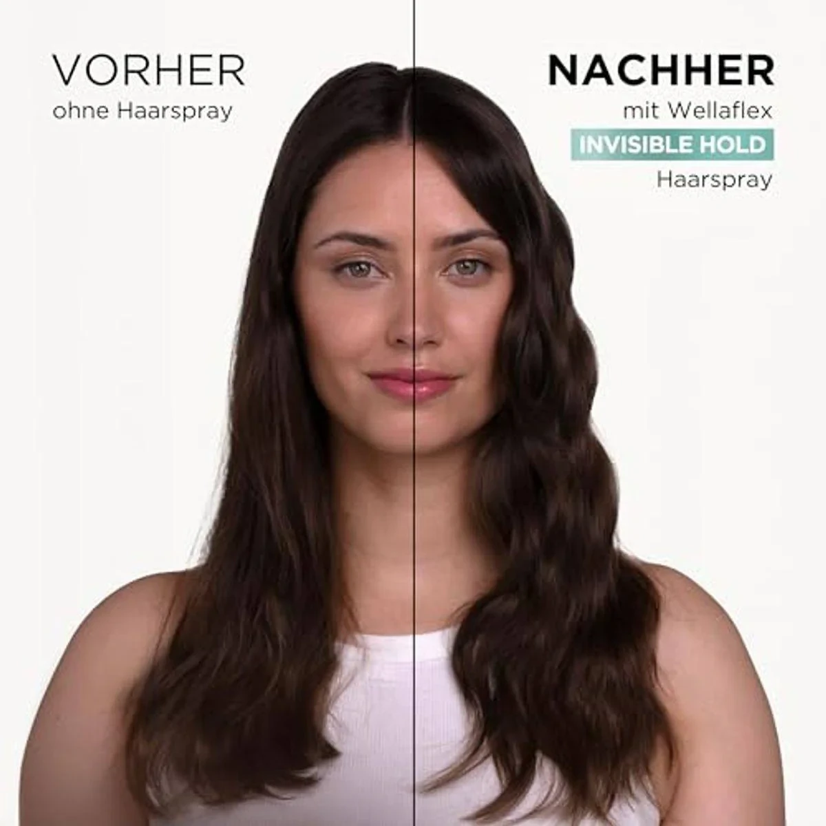 Wella Wellaflex Invisible Hold Hairspray offers an extra strong hold for up to 48 hours. Its vegan formula ensures a natural look and feel, protecting against UV rays and humidity. Ideal for all hair types, it provides flexible styling without residue. Flexible & invisible extra strong hold Natural hair feel without stickiness Gentle to scalp Vegan formula Dermatologically tested UV Protection Protects against humidity Easy to brush out Not SpecifiedWella: Innovators in hair care, offering vegan, dermatologically tested products for natural, flexible styling.Apply from a distance of about 30 cm onto dry hairKeep out of reach of children.