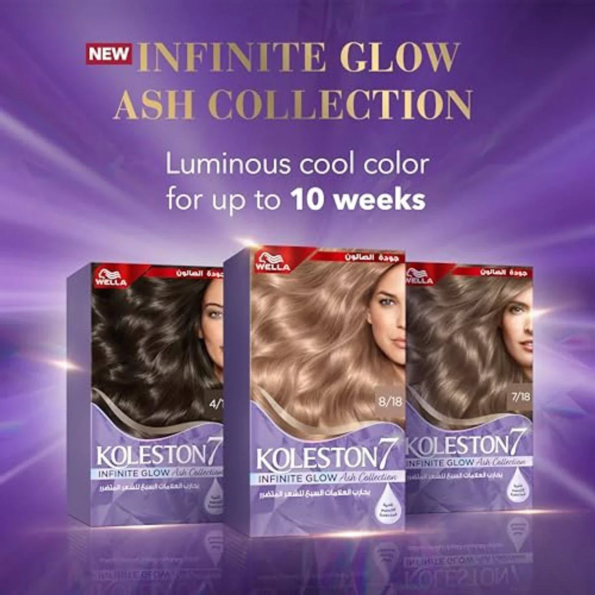 Wella Koleston Infinite Glow Ash Hair Color delivers 100% grey coverage with vibrant, fade-resistant color. Infused with Dual Restore Technology, it repairs hair fibers and neutralizes unwanted tones for up to 10 weeks. The oil-infused formula provides intense shine and moisture, leaving hair silky and strong. Ideal for achieving salon-quality results at home. Key Features 100% grey coverage Permanent color Oil-infused formula Long-lasting luminous color Neutralizes yellow and orange tones Dual Restore Technology Intense shine and moisture Anti-damage technology Not SpecifiedWella: Innovators in salon-quality hair color and care, known for vibrant, long-lasting results.Not SpecifiedStore in a cool, dry place. Store at room temperature (15°-25°C).