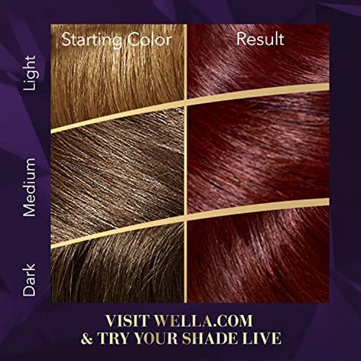 Wella Koleston Supreme Hair Color 4/6 Burgundy offers rich, deep color with complete gray coverage. Its formula hydrates and adds moisture, enhancing shine and vibrancy. Key Features Permanent cream formula Covers up to 100% of grey hair Moisturizing action for radiance Advanced Intense Gloss Treatment Color Reactivator enhances color Fresh floral fragrance Plex technology for hair repair Moisture built into every step Color Cream, Developer, Color Reactivator, Advanced Intense Gloss Treatment, Oil-Infused ElixirWella: Innovators in hair color and care, known for salon-quality products and advanced technology.Apply mix from roots through ends, massage in, leave for 40 minutes, rinse thoroughly with warm water.Hair colorations can cause allergic reactions. Use only on head hair. Always do an allergy test 48 hours before use. Do not color hair if you have a skin rash on the face, scalp sensitivity, or previous reactions to hair coloring or black henna tattoos.
