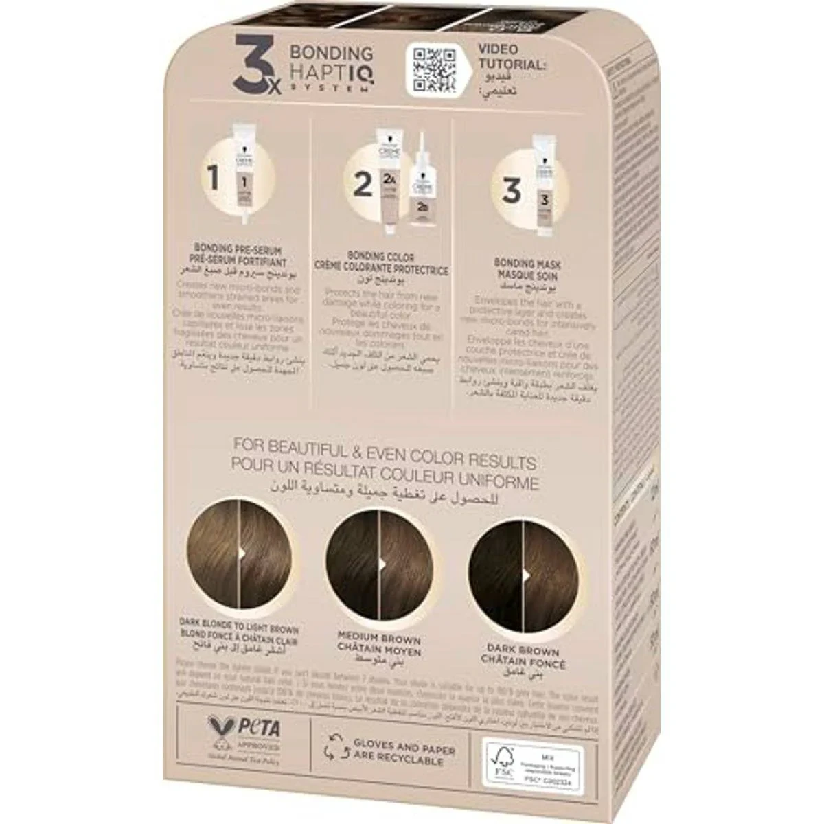 Schwarzkopf Creme Supreme 6-0 is a permanent hair color that offers a natural light brown shade. It features a 3x Bonding HaptIQ System for hair protection and even color results. PETA approved and free from animal-derived ingredients. 3x Bonding HaptIQ System 100% grey coverage Caring coloration with anti-damage protection Strengthens hair with micro-bonds Even color results PETA approved 27 beautiful shades available Key Components: Hair Dye (Contains Ammonia, Resorcinol, or derivatives); Developer (Contains Hydrogen Peroxide); Conditioning mask/serum.Schwarzkopf: Experts in hair care and coloration, known for innovative bonding technology.Follow The Application Process On The Instruction Leaflet Or Video Tutorial Available Via Qr Code.Hair Colorant Warnings: Must perform a patch allergy test 48 hours before use. Severe allergic reactions possible. Contains Ammonia and Hydrogen Peroxide.