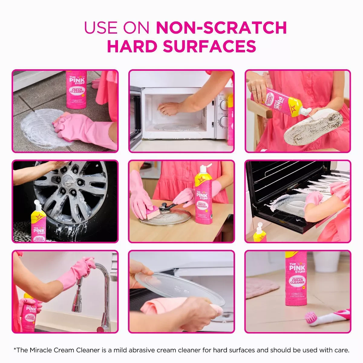 This mild abrasive cream cleaner is designed for hard surfaces, cutting through grease and tough stains effortlessly. Ideal for kitchens and bathrooms, it leaves surfaces sparkling clean and is vegan and cruelty-free. Key Features Effective multi-surface cleaning Non-abrasive formula Removes tough stains Versatile use for kitchen and bathroom Safe for delicate surfaces Leaves streak-free finish Pleasant fresh scent Vegan and cruelty-free Less than 5% Non-ionic surfactants, Benzisothiazolinone, Methylisothiazolinone, Polycarboxylates, Perfume.Known for effective cleaning solutions, The Pink Stuff specializes in versatile, vegan, and cruelty-free products.Shake bottle before use. Apply cream onto a damp soft cloth or sponge, wipe over, and rinse off with clean water. Buff with a clean dry cloth.Contains 1,2-benzisothiazolin-3(2H)-one;1,2-benzisothiasolin-3-one;2-Methyl-2H-isothiazol-3-one. May cause an allergic skin reaction. Keep out of reach of children. Wear protective gloves/eye protection. If on skin, wash with plenty of soap and water. If skin irritation or rash occurs, get medical advice/attention. Dispose of contents/container in accordance with local regulations.