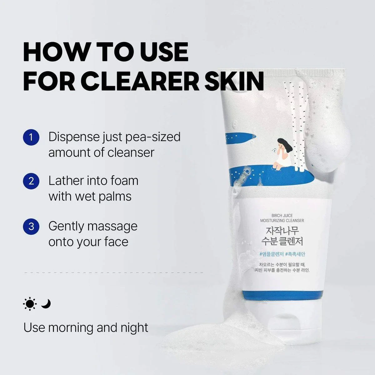 Water, Glycerin, Sodium Cocoyl Alaninate, Lauryl Hydroxysultaine, Disodium Cocoamphodiacetate, Sodium Methyl Cocoyl Taurate, Acrylates/C10-30 Alkyl Acrylate Crosspolymer, Betula Platyphylla Japonica Juice (10,000Ppm), Butylene Glycol, Sodium Hyaluronate, Hyaluronic Acid, Sodium Chloride, Glyceryl Glucoside, Ascorbic Acid, 1,2-Hexanediol, Artemisia Annua Extract, Anthemis Nobilis Flower Oil, Pinus Sylvestris Leaf Oil, Quillaja Saponaria Bark Extract, Caprylyl Glycol, Coco-Glucoside, Glyceryl Caprylate, Sodium Cocoyl Isethionate, Hexylene Glycol, Citric Acid, Disodium Edta.Round Lab: Korean skincare brand known for gentle, effective products using natural ingredients.Dispense A Small Amount And Lather Into A Rich Foam With Water. Gently Massage The Foam Over Your Entire Face, Then Rinse Thoroughly With Lukewarm Water.For external use only. Avoid contact with eyes. Discontinue use if irritation occurs.
