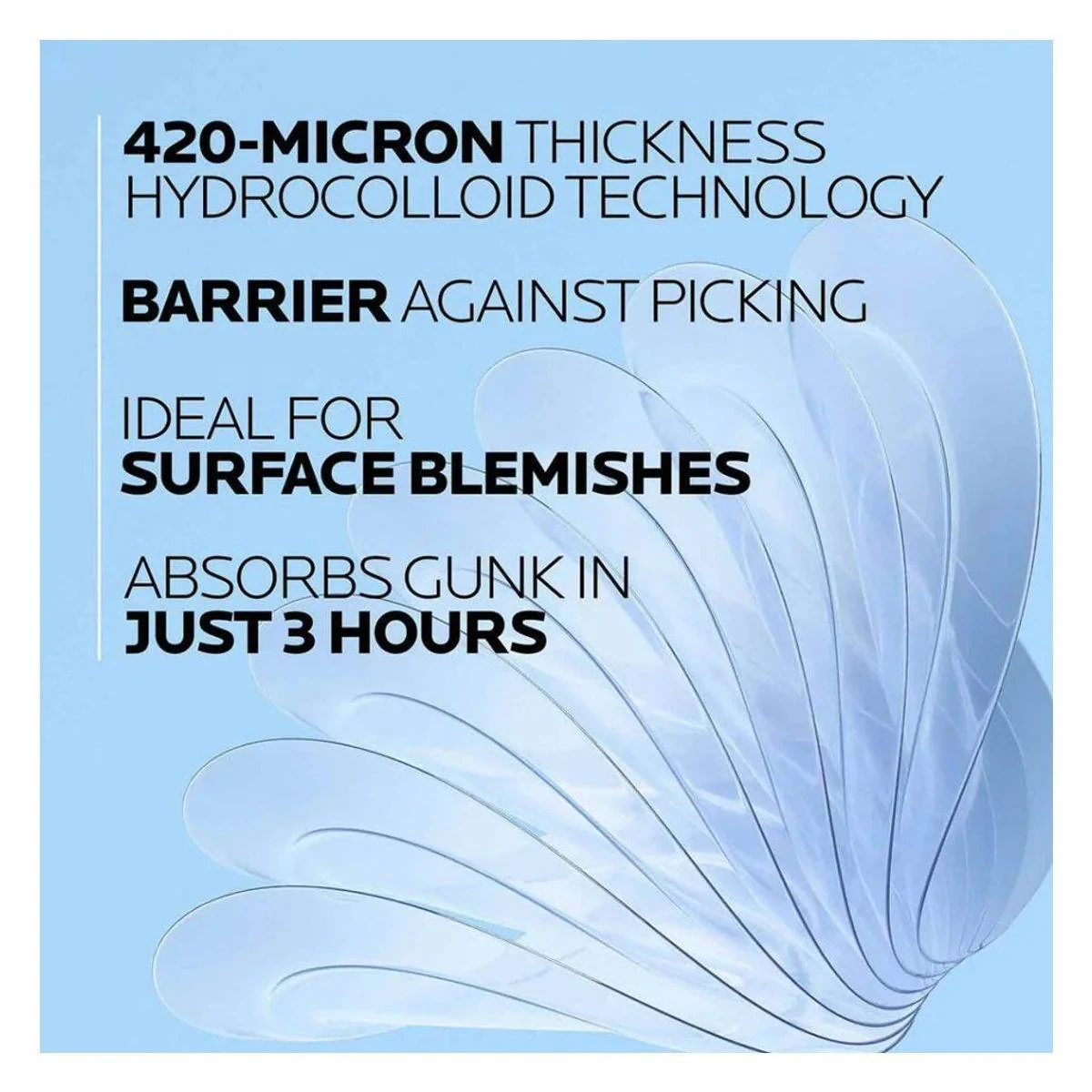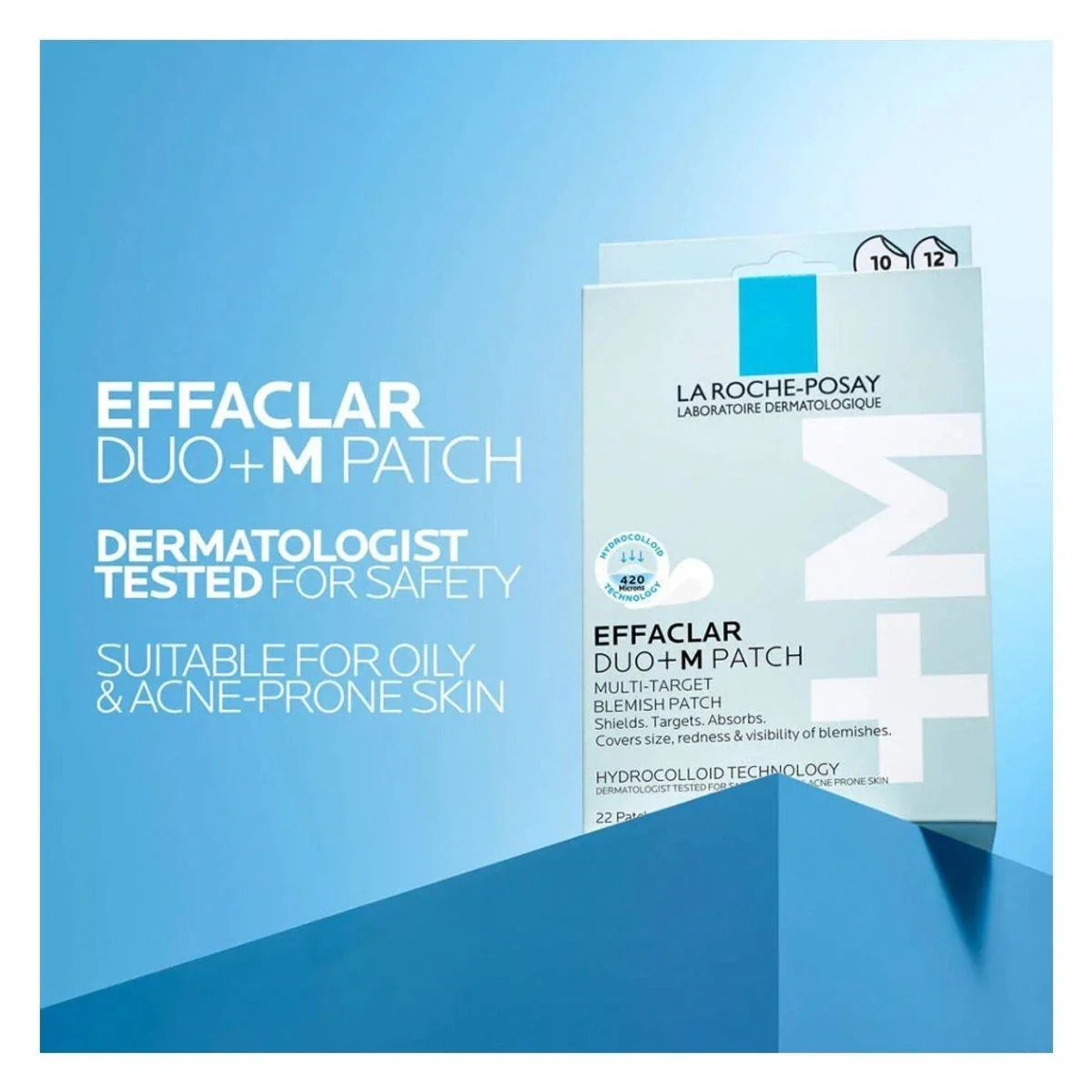 Effaclar Duo+M patches are designed for acne-prone skin, using hydrocolloid technology to reduce blemishes and preserve moisture. Suitable for sensitive skin. Features