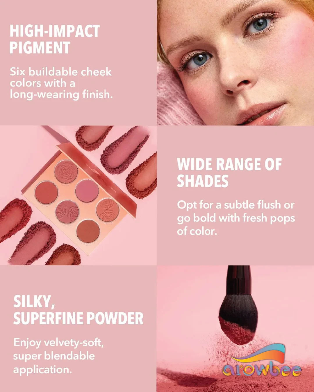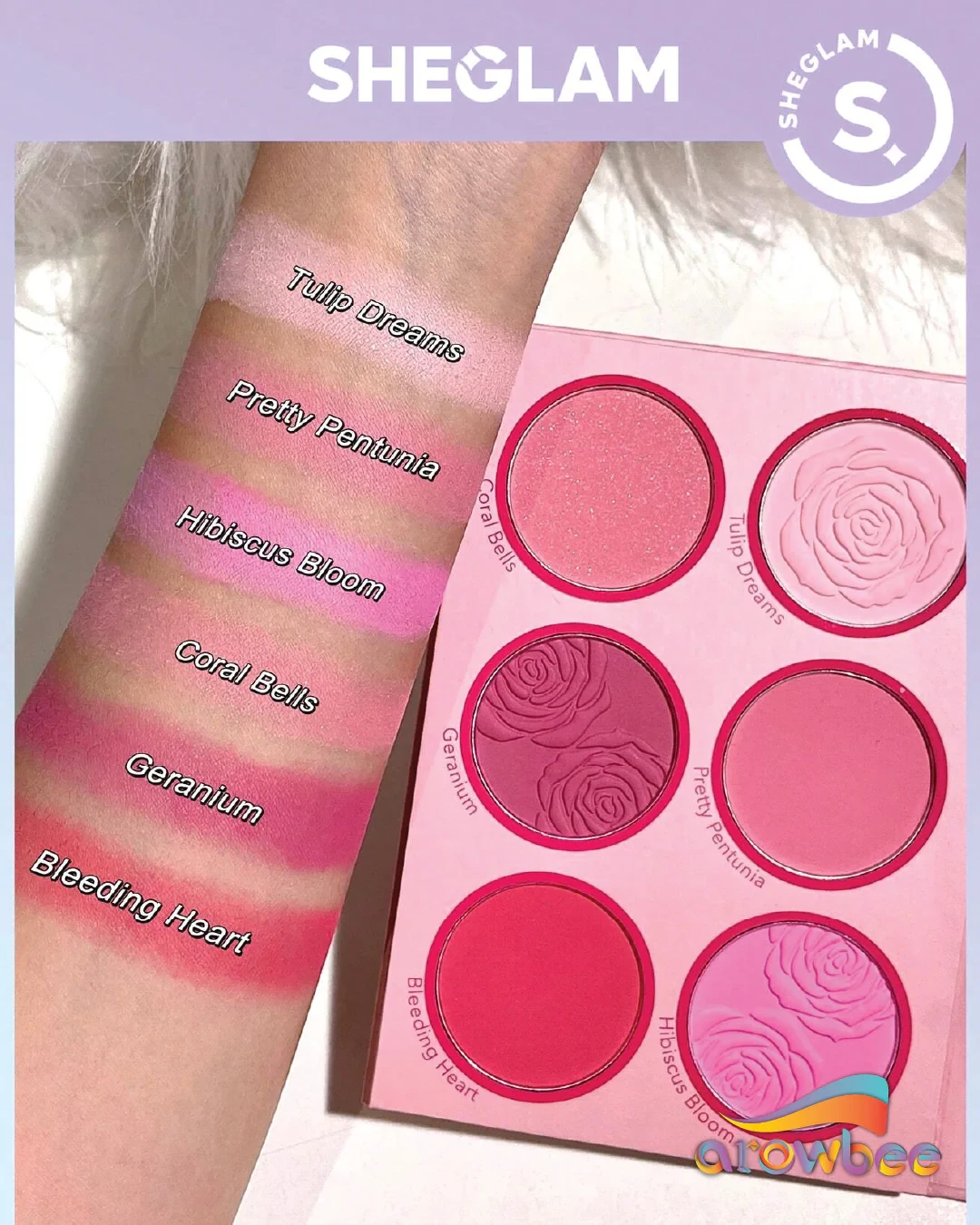 The Sheglam Floral Flush Blush Palette offers six stunning shades for a natural-looking finish. Easy to blend, petal-soft, lightweight, and long-wearing for all-day radiance. Ideal for creating a subtle flush or bold pops of color. Key Features Six buildable cheek colors Long-wearing finish Silky, superfine powder Velvety-soft, super blendable application Wide range of shades Cruelty-Free Alcohol-Free Vegan Fragrance-Free Gluten-Free Talc, Mica, Methyl Methacrylate Crosspolymer, Synthetic Wax, Dimethicone, Silica, Caprylic/Capric Triglyceride, Pentaerythrityl Tetraisostearate, Polymethylsilsesquioxane, Phenoxyethanol, Caprylyl Glycol.Sheglam: Innovative cosmetics brand known for vibrant, cruelty-free beauty products.Apply To Cheeks For A Natural Flush Of Color.For external use only. Discontinue use if irritation occurs. If powder gets into eyes, rinse immediately.