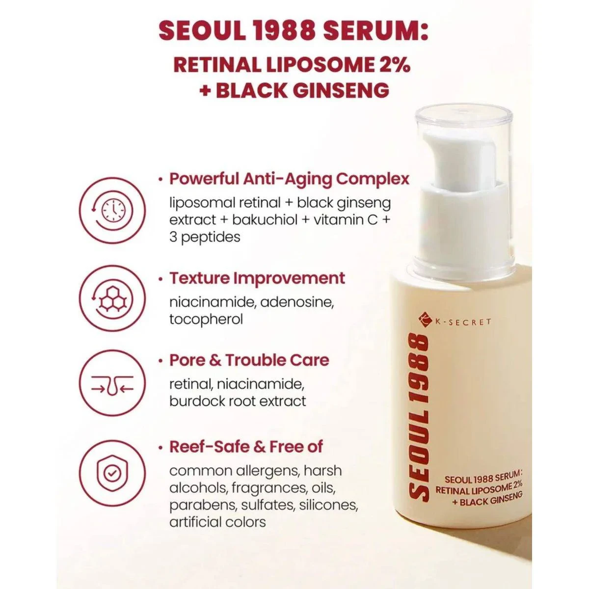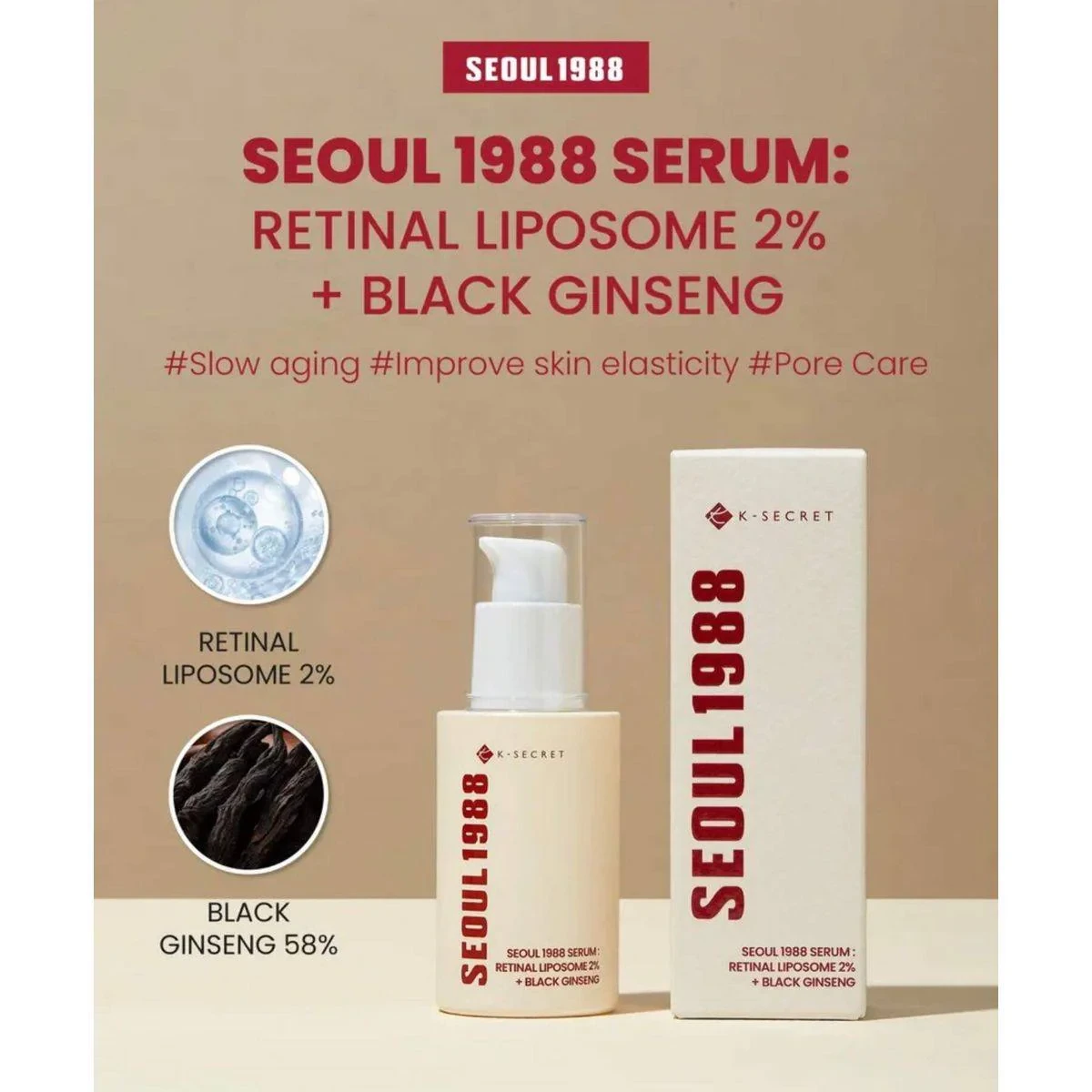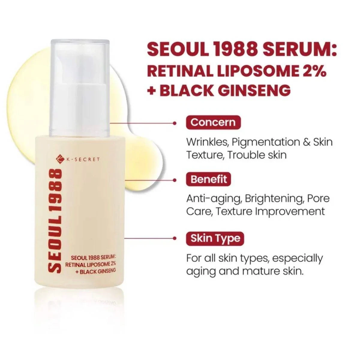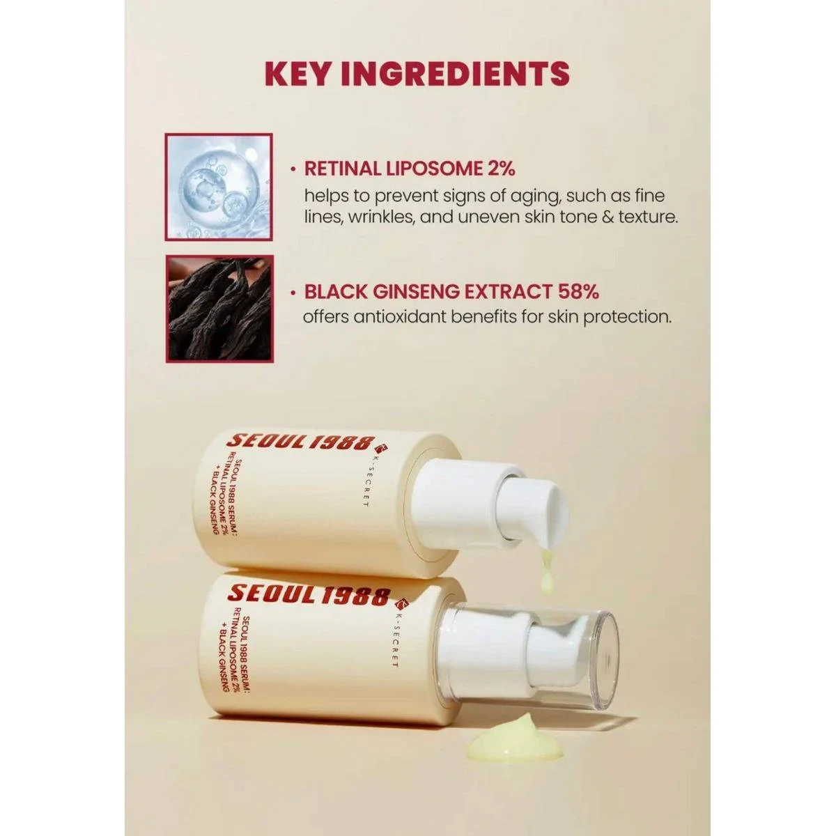 K-Secret Seoul 1988 Serum : Retinal Liposome 2% + Black Ginseng 30ml