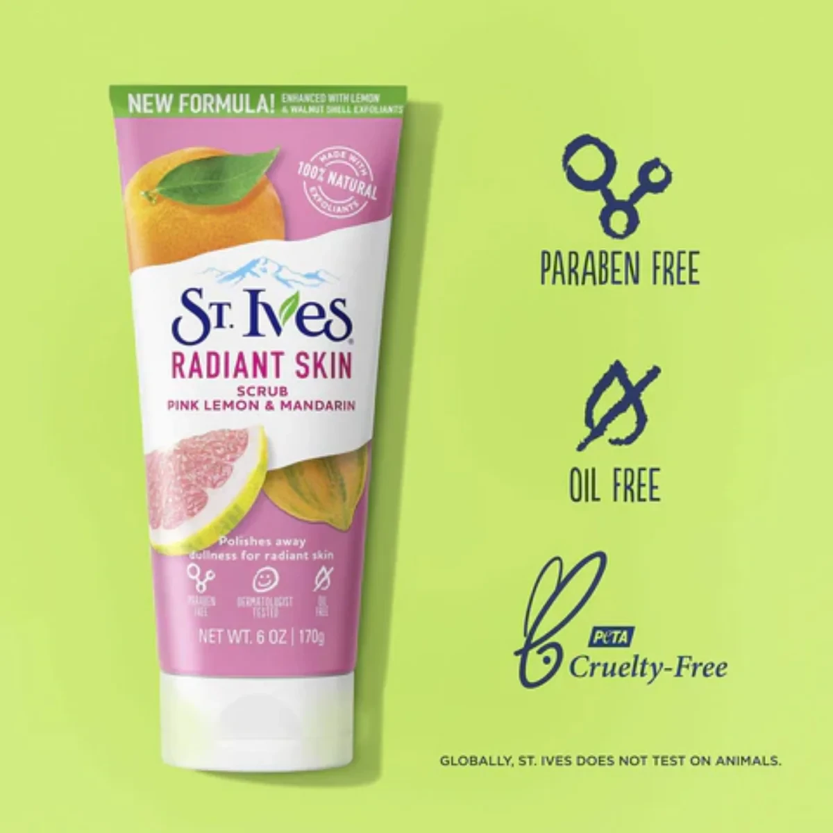 Polish away skin’s little imperfections. Infused with pink lemon and mandarin peel extracts, this citrusy face scrub smoothes away rough skin and evens out skin tone for positively glowing skin. Water, Glycerin, Hydrated Silica, Juglans Regia (Walnut) Shell Powder, Sodium Laureth Sulfate, Citrus Medica Limonum (Lemon) Fruit Extract, Citrus Nobilis (Mandarin Orange) Peel Extract, Fragrance, Disodium EDTA, Citric Acid.St. Ives (owned by Unilever) is a popular US skincare brand. This scrub features Pink Lemon and Mandarin for a radiant effect.Dampen face and apply scrub. Massage gently in circular motions, avoiding the eye area. Rinse thoroughly. Use 3-4 times a week.For external use only. Avoid eye area. Limit use to 3-4 times per week to avoid over-exfoliation.
