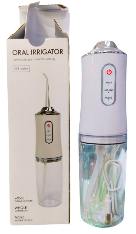 جهاز تنظيف الأسنان بالماء لاسلكي قابل لإعادة الشحن بإستخدام نبض ماء عالي الضغط 1400 مرة في الدقيقة للتنظيف وفعال لتنظيف الأسنان فهو يزيل ما يصل إلى 99.9% من البلاك من المناطق المعالجة مما يؤدي إلى تحسين صحة اللثة وبه خزان مياه.