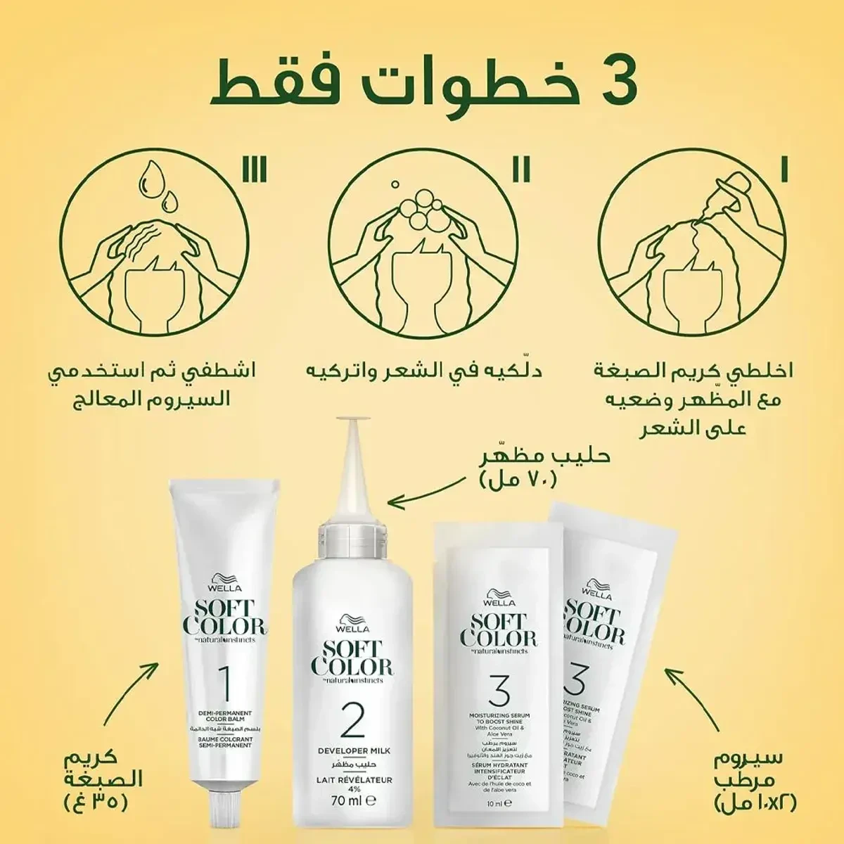 Wella Soft Color Natural Instincts Hair Color 60 Dark Blonde offers a nourishing, ammonia-free solution with Shea Butter, Coconut Oil, and Aloe Vera. Achieves vibrant, multi-dimensional tones with 90% less hair breakage. Features