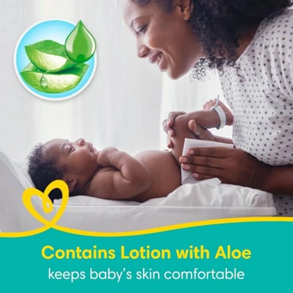 Pampers Baby Wipes Complete Clean Aloe 256 Pack offers a gentle clean for your baby's delicate skin. Infused with aloe vera, these wipes are alcohol-free and dermatologically tested. Ideal for hands and face, they maintain the skin's natural pH balance. Features Unique pH balancing formula Soft & strong for quick cleaning 0% alcohol, gentle on skin Contains lotion with aloe Lotion With Aloe VeraPampers: Trusted in baby care, offering gentle and effective products for your little one's delicate skin.Use to gently wipe baby's skin during diaper change or for general cleaning. Close lid firmly after use. Do not flush.Choking Risk: Keep packaging and wipes out of reach of children. Wipes pose a choking/suffocation risk if placed in the mouth. Do not flush.