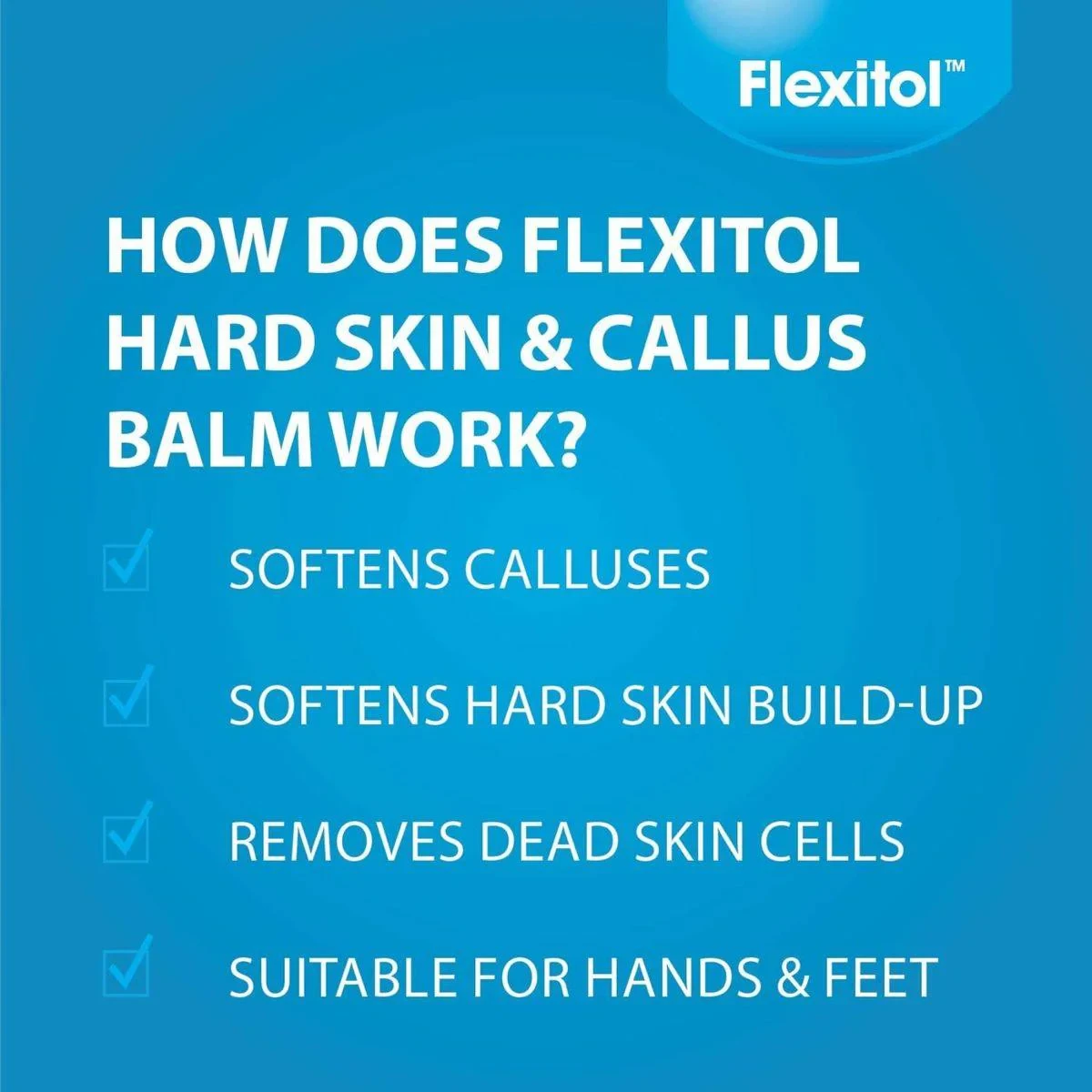 Flexitol Callus Remover Cream is designed to soften and remove tough, thickened skin caused by calluses. Infused with urea and exfoliating agents, it gently breaks down hardened skin while providing deep hydration. Ideal for rough, dry, and calloused feet, it helps restore smoothness and comfort with regular use. Features Softens hard skin and calluses Gently exfoliates callused skin Promotes healthy skin growth Highly effective Visible results in 3 days Suitable for diabetics Urea, Exfoliating AgentsFlexitol is renowned for its effective skincare solutions, specializing in products that soften and exfoliate hard skin.Apply to affected areas twice daily, morning and night, or as directed by a healthcare professional.Suitable for diabetics.