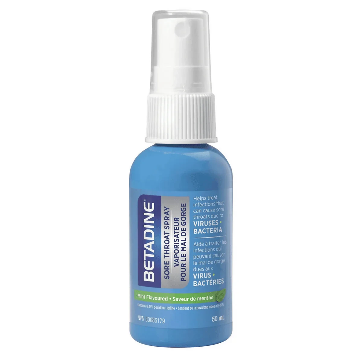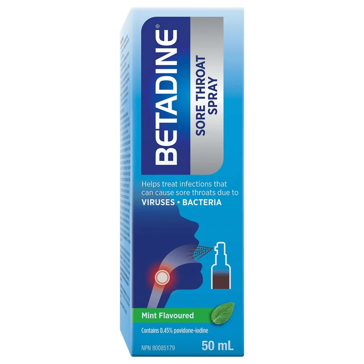 Betadine Throat Spray 50ml is formulated to help treat infections that can cause sore throats due to viruses and bacteria. Contains 0.45% povidone-iodine and is mint flavored for a refreshing experience. Ideal for quick relief and effective infection control. Features Helps treat infections that can cause sore throats due to viruses and bacteria Mint flavoured Contains 0.45% povidone-iodine 50 mL bottle Contains 0.45% Povidone-Iodine.Betadine: Trusted for antiseptic solutions, specializing in infection control and throat care.Spray 1-2 times directly onto the affected throat area up to 3 times per day. Spit out excess liquid.Medicated Warning: Do not use if allergic to povidone-iodine or if you have any type of thyroid disorder. Consult a doctor if pregnant or breastfeeding. Do not use in children under 6 years. Contact physician if accidentally swallowed in large amounts.