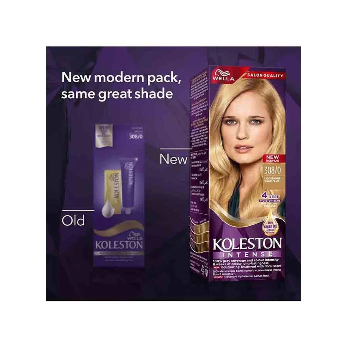 Wella Koleston Intense Hair Color in Light Blonde offers vibrant, long-lasting color with 100% grey coverage. Enriched with argan oil and deep moisturizers, it nourishes and hydrates hair, ensuring salon-quality results at home. Features 100% grey coverage Long-lasting color for up to 8 weeks Moisturizing treatment with Argan Oil 4 deep moisturizers Intense color with millions of pigments Color Cream, Color Developer, Advanced Damage Repair Treatment, Moisturizing Treatment with Argan Oil, 4 Deep MoisturizersWella is renowned for salon-quality hair color products, offering vibrant and long-lasting results.Mix the dye ingredients according to the instructions on the package. Apply to dry hair starting from the roots to the ends. Leave for 30-40 minutes. Wash thoroughly with lukewarm water.It is preferable to perform a sensitivity test 48 hours before use.