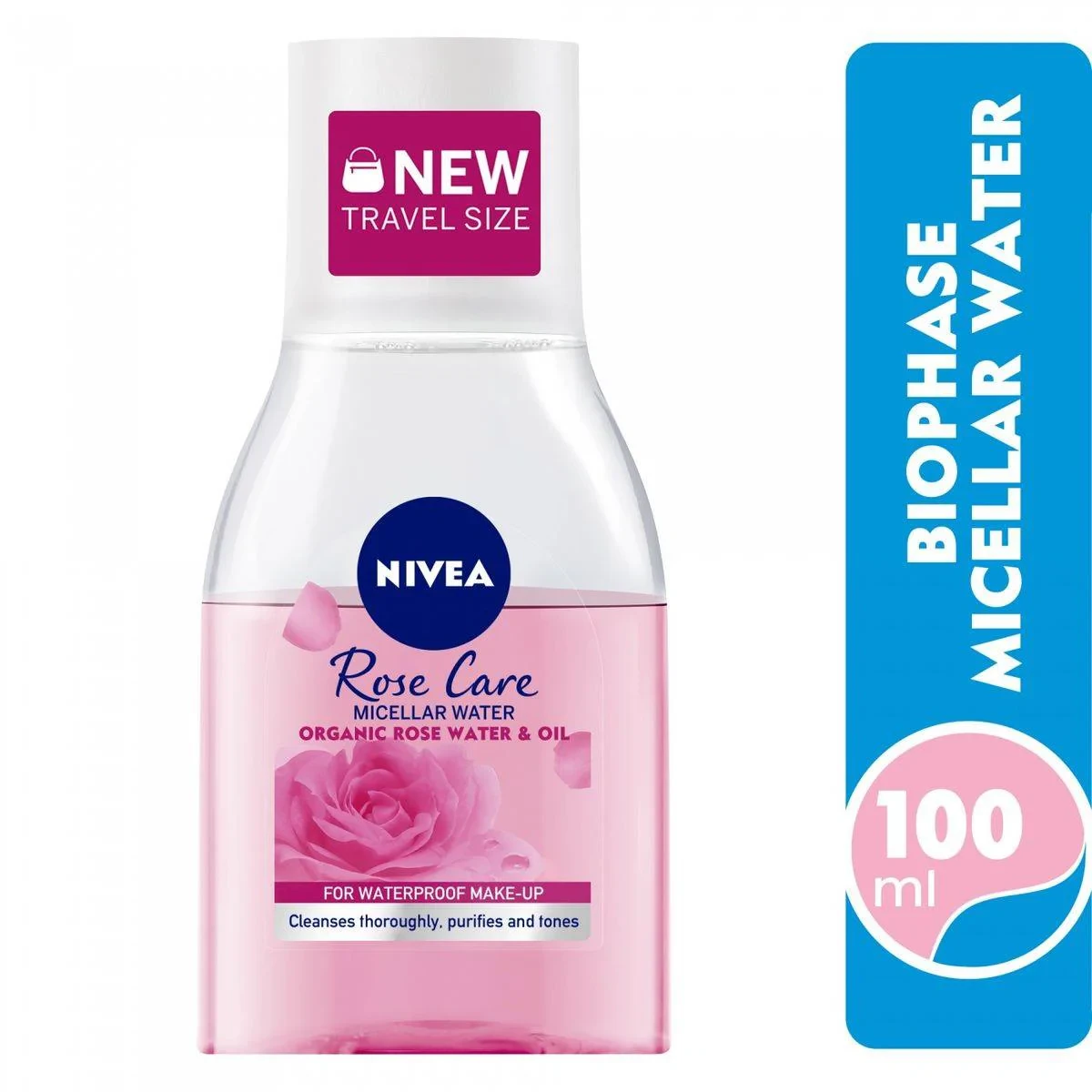 Nivea Face Makeup Remover Micellar Water Rose Care 100ml is designed to gently remove waterproof makeup without rubbing or rinsing. Infused with organic rose water and oil, it cleanses thoroughly, purifies, and tones the skin while providing immediate moisture that lasts for 24 hours. Suitable for all skin types, it leaves your face clean, soft, and smooth without any visible residue or greasy feeling. Features