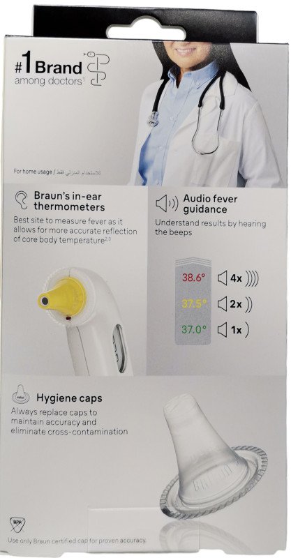 جهاز قياس درجة الحرارة بالأشعة تحت الحمراء عن طريق الأذن والقياس من أول ثانية وصوت تنبيه عند القياس.
