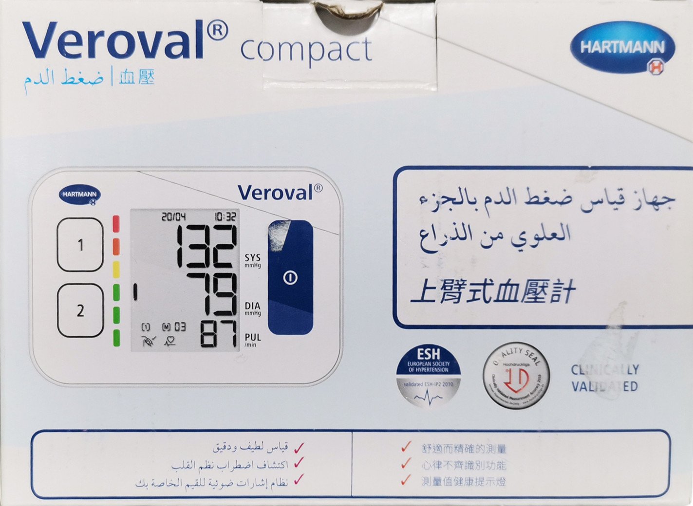 جهاز فحص الضغط بشاشة كبيرة تسهل قراءة القيم المقاسة وتوفر تجربة استخدام مريحة ويتميز باكتشاف عدم انتظام ضربات القلب.
