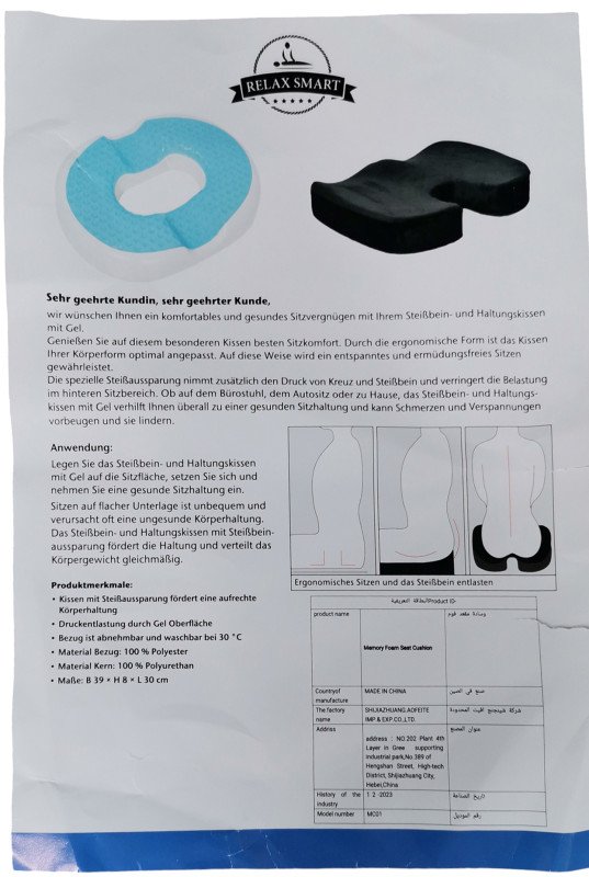 مخده مقعد عصعص طبي مصنوع من مادة الميموري فوم بتكنولوجيا تصنيع امريكية وتمتاز بأنها آمنة وصحية مزود بغطاء خارجي من القطيفة الناعمة قابل للغسل.