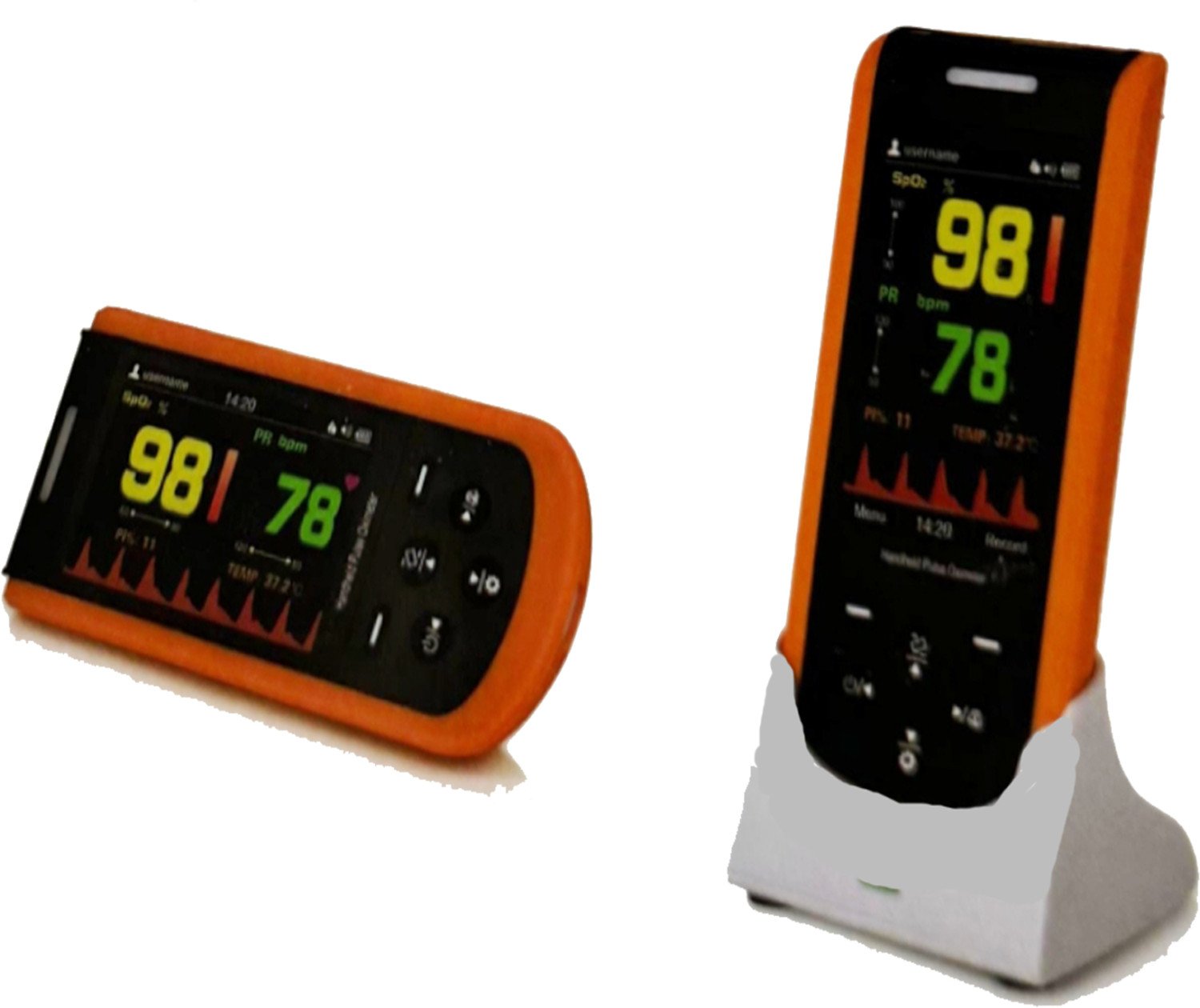 جهاز لقياس نسبة الأكسجين بالدم ومعدل النبض وحرارة الجسم مع بشاشة ومناسب الاطفال والرضع.