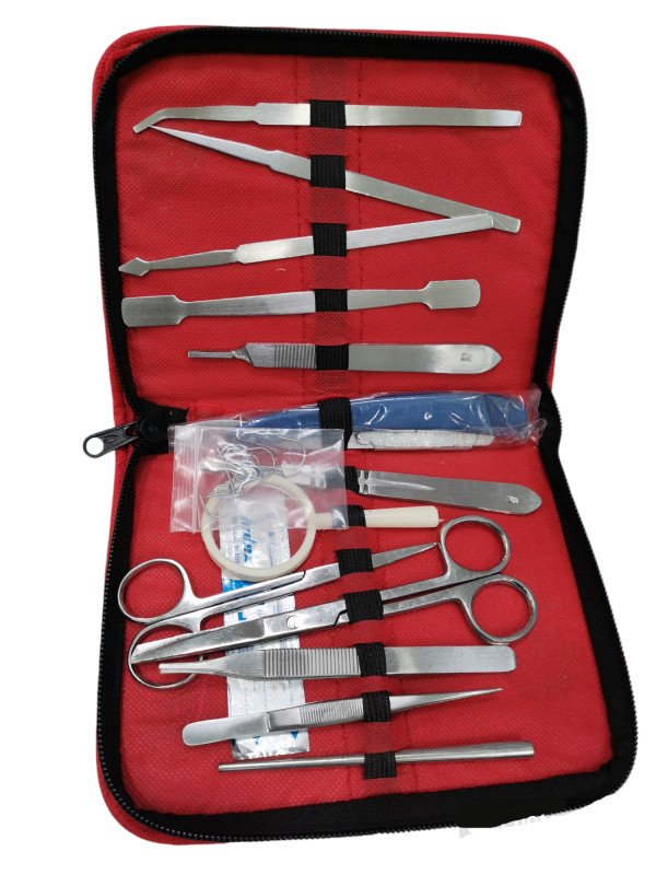 شنطة تشريح DISSECTING SET بها أدوات متنوعة لتشريح مصنوعة من فولاذ مقاوم للصدأ.