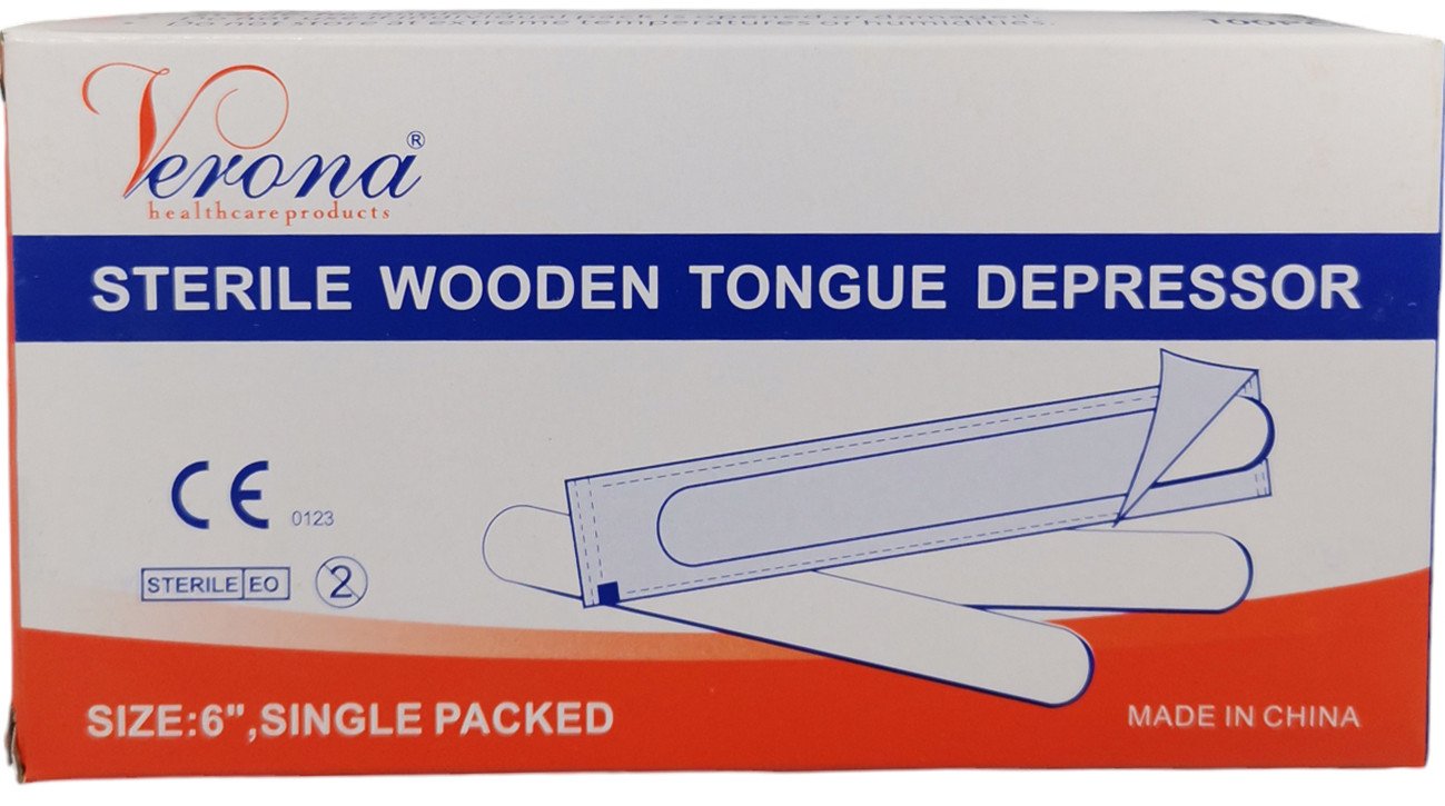 خافض لسان معقم لفحص البلعوم والحنجرة ولا يتسبب بالضرر لأنسجة الفم الداخلية ومعبأة في أكياس معقمة واستعمال مرة واحدة.