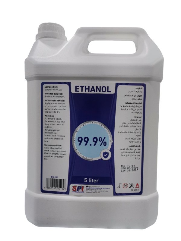 ايثانول 99% 5 لتر SPIيستخدم كحول ايثانول 99% لتعقيم الأسطح والأدوات.