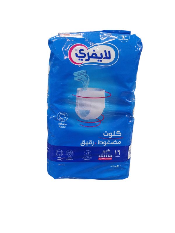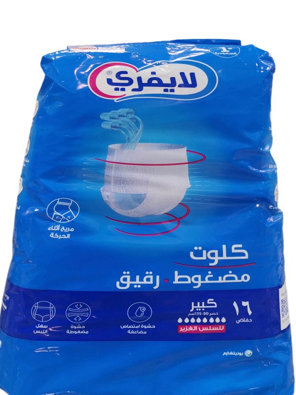 ليفري كِلوت رقيق حفاضات لكبار السن تتميز بالمرونة العالية والامتصاص والنعومة لراحة كبار السن بنسبة 100 %وتمتص حتى 3 أكواب من الماء بدون تسرب.