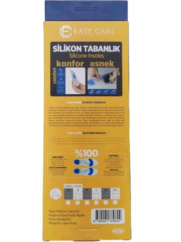 يقلل من الضغط الموجودة على كعب القدم وتوزيعه عليها كلها وتم تصميمه ليتناسب مع الشكل الهندسي للقدمين ويخفف من الآلام الناتجة عن الوقوف لفترات طويلة.