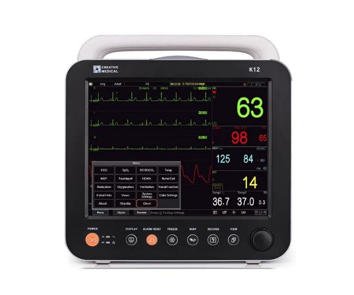 جهاز مراقبة العلامات الحيوية للمريض الجهاز محمول ومتنقل ويتميز بدقة وسرعة الأداء وخفيف الوزن وصغير الحجم ويتميز الجهاز بشاشة LCD عرض 12.1 إنش ذاتية الإضاءة عالية الدقة والرسوم البيانية شديدة الوضوح وعالية الاستجابة وتعمل باللمس ويقوم جهاز بعمل تخطيط للقلب ومراقبة التنفس ونسبة الأكسجين في الدم ومعدل ضربات القلب وضغط الدم ودرجة حرارة الجسم.