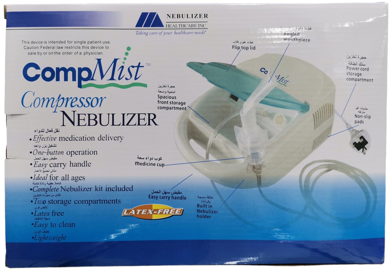 جهاز رذاذ ضاغط سهل التشغيل والاستخدام ممتاز لعلاج الربو والحساسية وأمراض الجهاز التنفسي الأخرى.