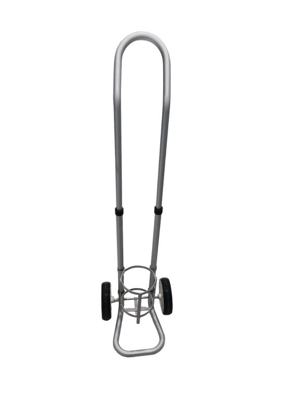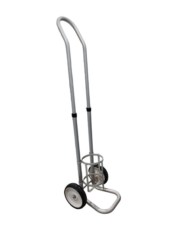 ترولي اسطوانة اكسجين سهل الطى والفرد متحرك على عدد 4 عجلات العجلتين الاماميتين 6 بوصة والخلفية 4 بوصة طلاء الكتروستاتيك مقاوم للصدأ مزود بمقابض من الكاوتش لراحة اليد اثناء الامساك والتحريك مصنع من الصلب المقوى.