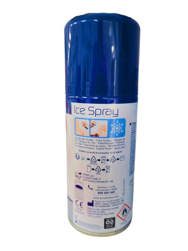 بخاخ ثلجي علاج أوّلي للتخفيف من آلام الإصابات كالضربات والالتواءات والتمزق العضلي والخلع والكسور وغيرها كإسعاف أولي في حقيبة المُسعف وشنطة الإسعافات الأولية المتوفرة في الملاعب والمدارس والنوادي الرياضية وغيرها.