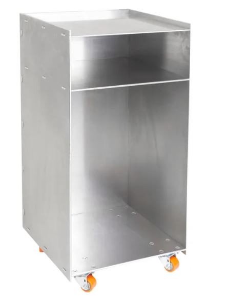 كمودينو معدن مضاد للبكتيريا و الصدأ ويتكون من ضلفه ودرج ورف لوضع الأكل عليه ومزود بحامل منشفه ويد للتحرك يمكن غلقها.