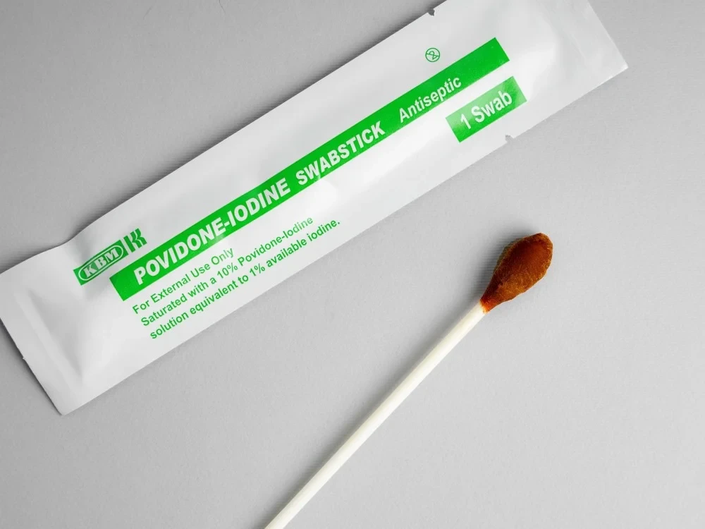 اعواد بوفدين ايودين لتعقيم الجروح وتنظيفها.