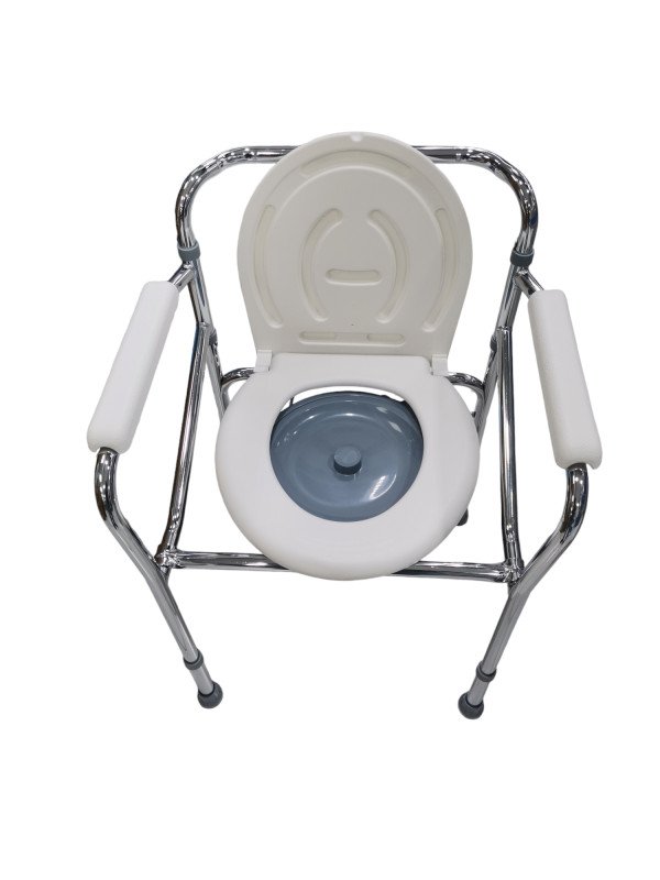 الهيكل الرئيسي مصنوع من الفولاذ المتين المطلي بالبودرة والمقعد مصنوع من مادة بلاستيكية وتسمح لك مساند الذراعين بالحفاظ على التوازن أثناء الوقوف والجلوس ويجعل التصميم القابل للطي.