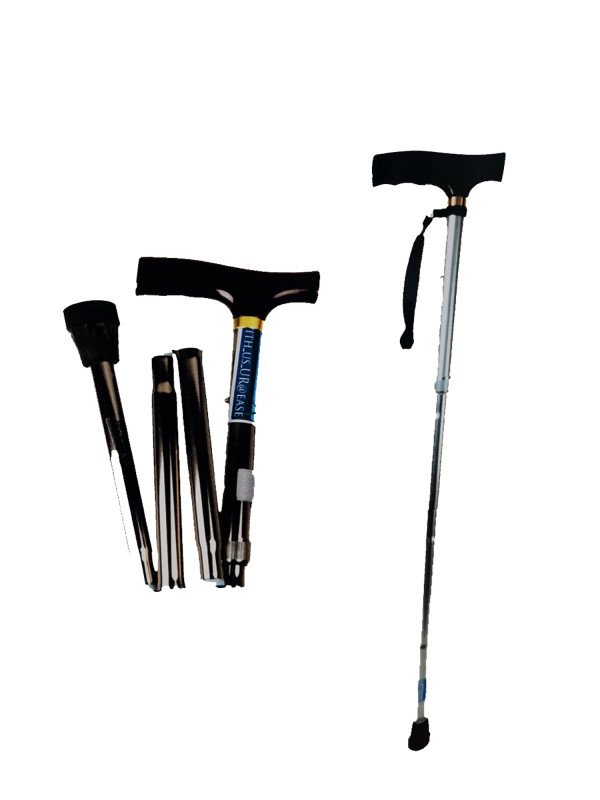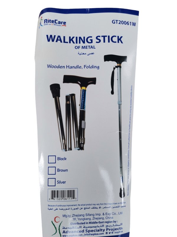 عكاز مصنوعة من الألمنيوم المتين وقابلة للطي لسهولة الحمل والتخزين والعكاز مزوّدة بقاعدة عريضة ومرنة للمساعدة على التوازن وارتفاع قابل للتعديل مصممة للاستخدام مع كبار السن.