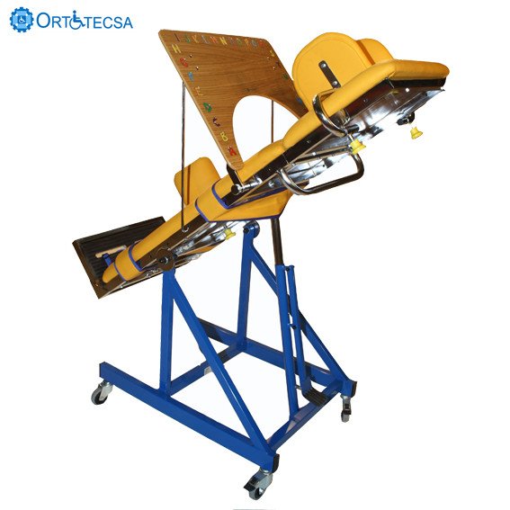 "• Children's Incline Board - F.10N The design and components of the board allow exercises to be performed in the prone and supine position. • Converts from vertical to horizontal position by means of a telescopic system. • Removable footrest to allow breathing exercises. • Removable headrest. • Includes a chest strap and two arm and leg straps. • Four wheels (2 with brakes). • Metal frame with chrome and polyester finish. • Fire-resistant upholstery M2. • Dimensions 60 x 115 (150 cm with headrest). • Optional accessories (tray- set of head supports- set of chest supports- leg spacer- abduction roller- children's footrest)."