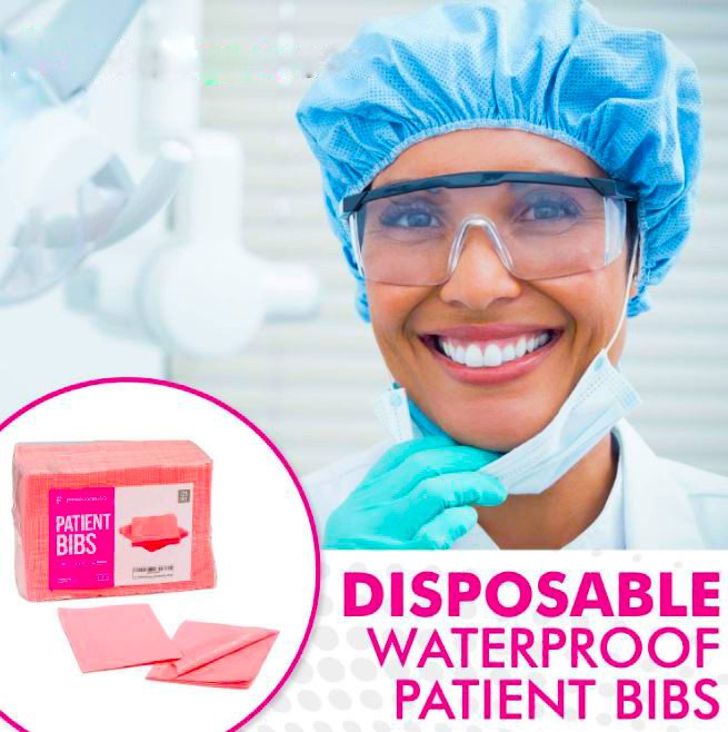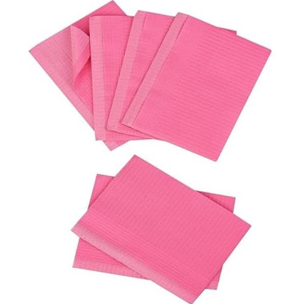 Patient Bibs, 2 Ply Paper + 1 Ply Poly, 6.5 gram, Pink - 125PCs Per Bag - 4Bags Per Case